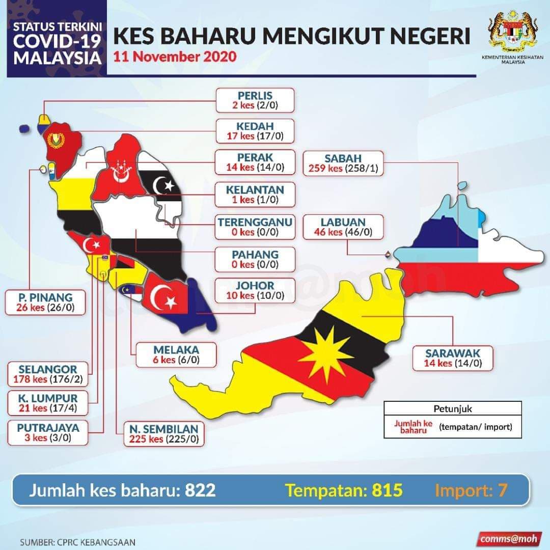 Status Terkini Kes Baharu Jangkitan COVID-19 Mengikut Negeri Di Malaysia 11/11/2020 Aiman Siaran Media 11 November 2020 Jumlah paparan: 1417 Rating: ( 0 Rating ) Sila beri kadar Undi 1 Undi 2 Undi 3 Undi 4 Undi 5 Lihat / Muat Turun JPG Facebook Twitter Seterusnya Seterusnya