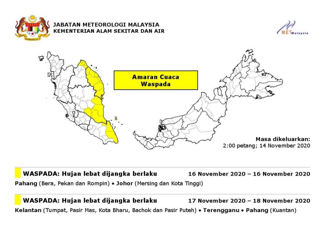 Amaran Cuaca Waspada 14/11/2020 1400 PM Aiman Cuaca 14 November 2020 Jumlah paparan: 560 Rating: ( 0 Rating ) Sila beri kadar Undi 1 Undi 2 Undi 3 Undi 4 Undi 5 Lihat / Muat Turun JPG Facebook Twitter Seterusnya Seterusnya