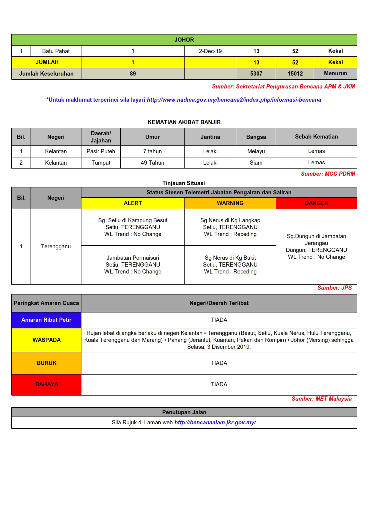 Cetak Laporan Situasi Bencana 04/12/2019 1200 AM Asrul Laporan Situasi 04 Disember 2019 Muat Turun PDF Muat Turun JPG 1 Muat Turun JPG 2 Facebook Twitter Seterusnya Seterusnya