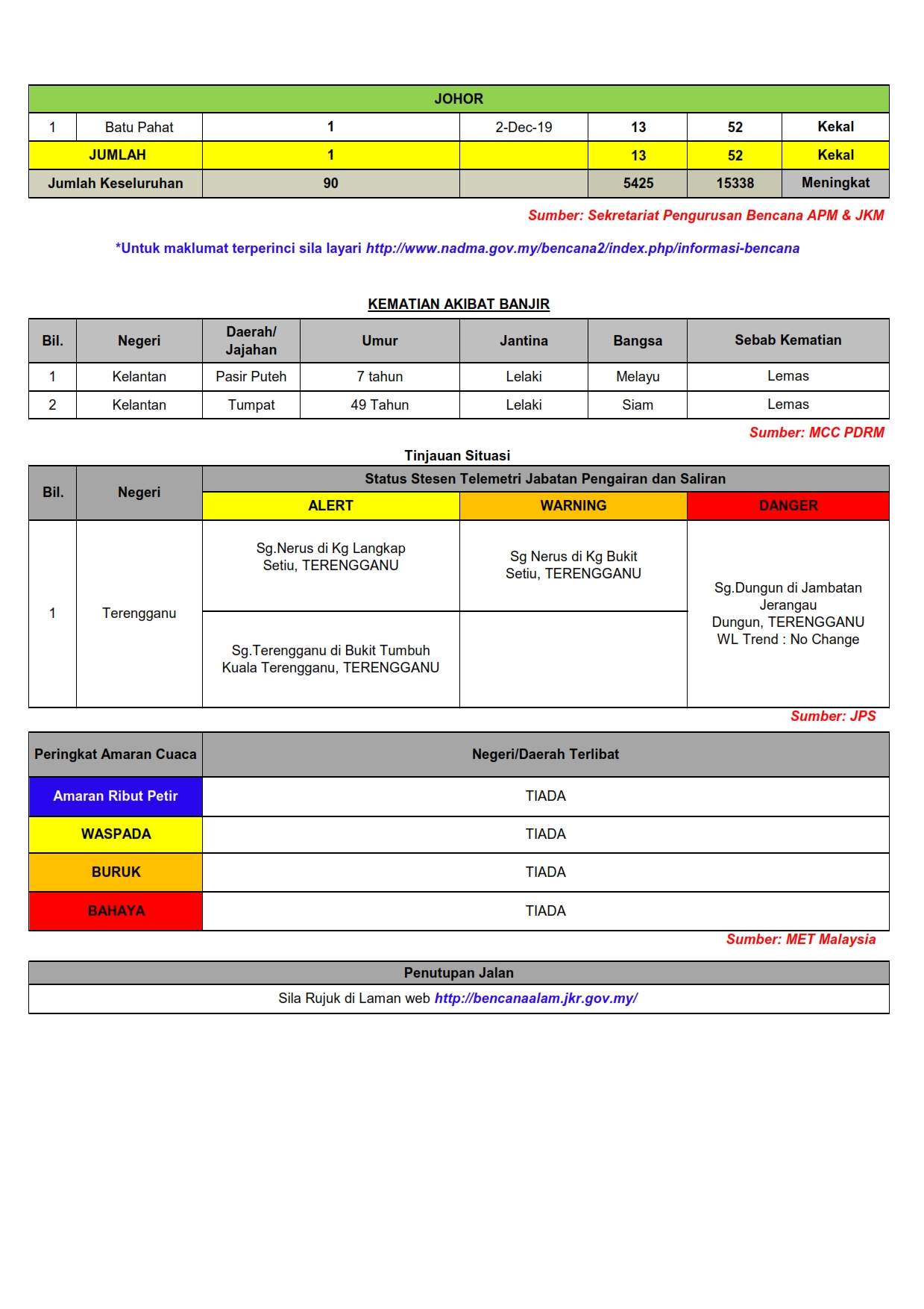 Cetak Laporan Situasi Bencana 04/12/2019 0400 AM Asrul Laporan Situasi 04 Disember 2019 Muat Turun PDF Muat Turun JPG 1 Muat Turun JPG 2 Facebook Twitter Seterusnya Seterusnya