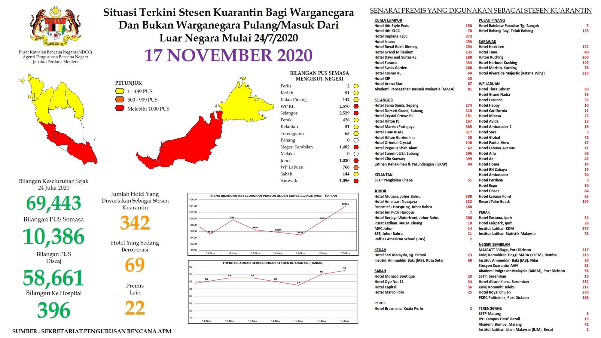 Situasi Terkini Stesen Kuarantin Bagi Warganegara Dan Bukan Warganegara Pulang/Masuk Dari Luar Negara 17/11/2020 Aiman Siaran Media 17 November 2020 Jumlah paparan: 647 Rating: ( 0 Rating ) Sila beri kadar Undi 1 Undi 2 Undi 3 Undi 4 Undi 5 Lihat / Muat Turun PDF Facebook Twitter Seterusnya Seterusnya