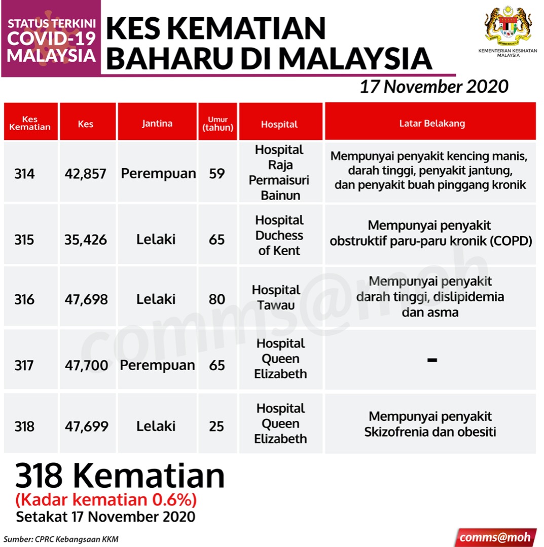 Kes Kematian Baharu COVID-19 Di Malaysia 17/11/2020 Aiman Siaran Media 17 November 2020 Jumlah paparan: 527 Rating: ( 0 Rating ) Sila beri kadar Undi 1 Undi 2 Undi 3 Undi 4 Undi 5 Lihat / Muat Turun JPG Facebook Twitter Seterusnya Seterusnya
