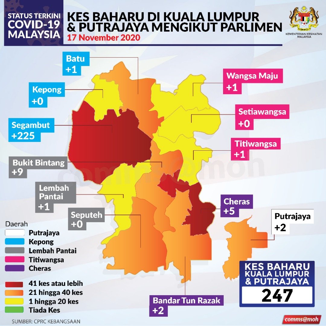 Situasi Terkini Kes Baharu COVID-19 Di WP Kuala Lumpur & Putrajaya 17/11/2020 Aiman Siaran Media 17 November 2020 Jumlah paparan: 506 Rating: ( 0 Rating ) Sila beri kadar Undi 1 Undi 2 Undi 3 Undi 4 Undi 5 Lihat / Muat Turun JPG Facebook Twitter Seterusnya Seterusnya