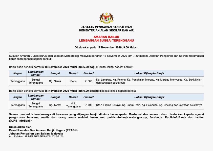 Amaran Banjir Lembangan Sungai Terengganu 17/11/2020 0900 PM Aiman Cuaca 17 November 2020 Jumlah paparan: 1039 Rating: ( 0 Rating ) Sila beri kadar Undi 1 Undi 2 Undi 3 Undi 4 Undi 5 Lihat / Muat Turun JPG Facebook Twitter Seterusnya Seterusnya