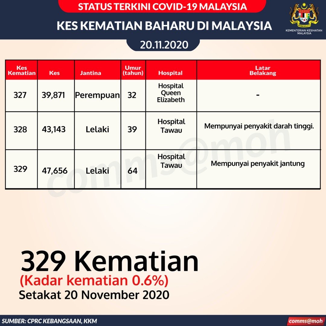 Kes Kematian Baharu COVID-19 Di Malaysia 20/11/2020 Aiman Siaran Media 20 November 2020 Jumlah paparan: 585 Rating: ( 0 Rating ) Sila beri kadar Undi 1 Undi 2 Undi 3 Undi 4 Undi 5 Lihat / Muat Turun JPG Facebook Twitter Seterusnya Seterusnya