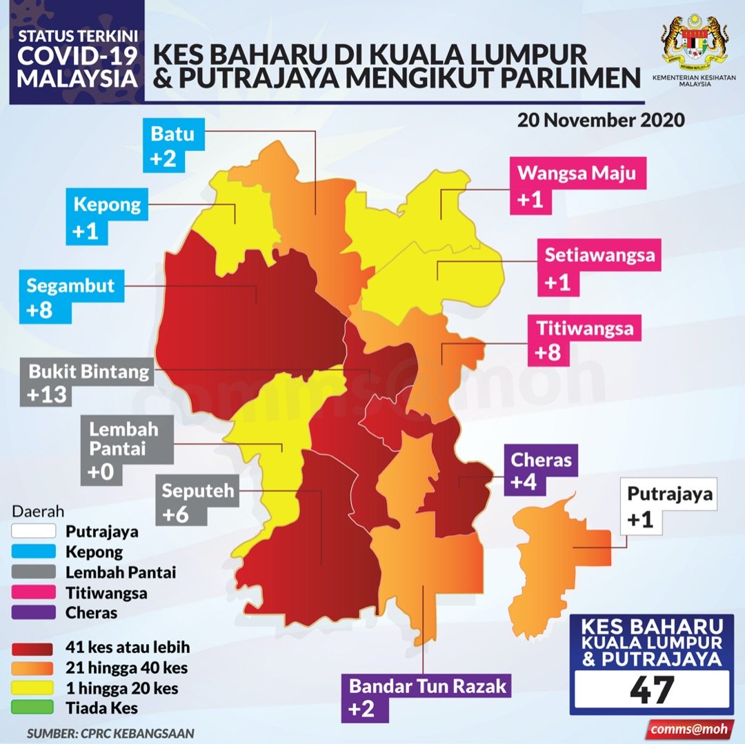 Situasi Terkini Kes Baharu COVID-19 Di WP Kuala Lumpur & Putrajaya 20/11/2020 Aiman Siaran Media 20 November 2020 Jumlah paparan: 667 Rating: ( 0 Rating ) Sila beri kadar Undi 1 Undi 2 Undi 3 Undi 4 Undi 5 Lihat / Muat Turun JPG Facebook Twitter Seterusnya Seterusnya