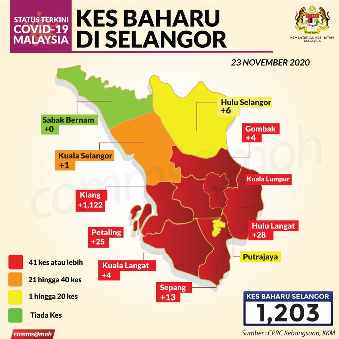 Situasi Terkini Kes Baharu COVID-19 Di Selangor 23/11/2020 Aiman Siaran Media 23 November 2020 Jumlah paparan: 525 Rating: ( 0 Rating ) Sila beri kadar Undi 1 Undi 2 Undi 3 Undi 4 Undi 5 Lihat / Muat Turun JPG Facebook Twitter Seterusnya Seterusnya