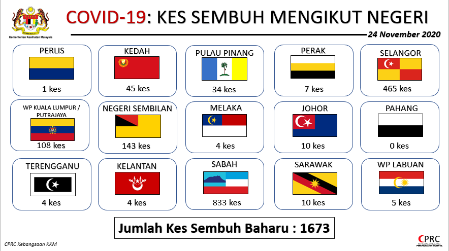 COVID-19: Kes Sembuh Mengikut Negeri 24/11/2020 Aiman Siaran Media 24 November 2020 Jumlah paparan: 768 Rating: ( 0 Rating ) Sila beri kadar Undi 1 Undi 2 Undi 3 Undi 4 Undi 5 Lihat / Muat Turun JPG Facebook Twitter Seterusnya Seterusnya