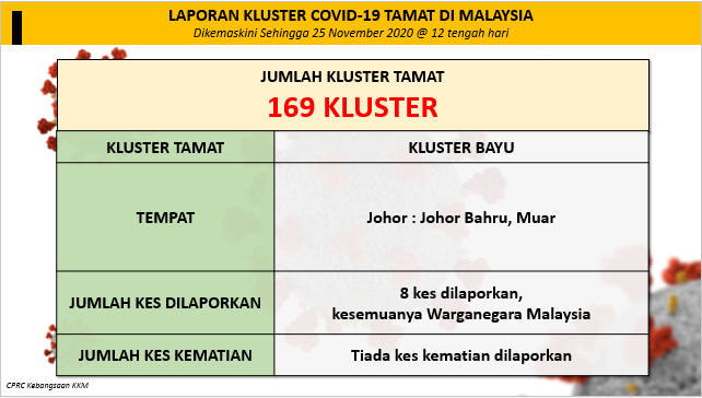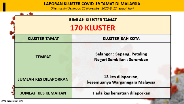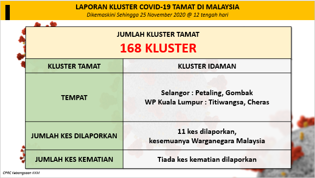 Laporan Kluster COVID-19 Tamat Di Malaysia 25/11/2020 1200 PM Aiman Siaran Media 25 November 2020 Jumlah paparan: 882 Rating: ( 0 Rating ) Sila beri kadar Undi 1 Undi 2 Undi 3 Undi 4 Undi 5 Facebook Twitter Seterusnya Seterusnya
