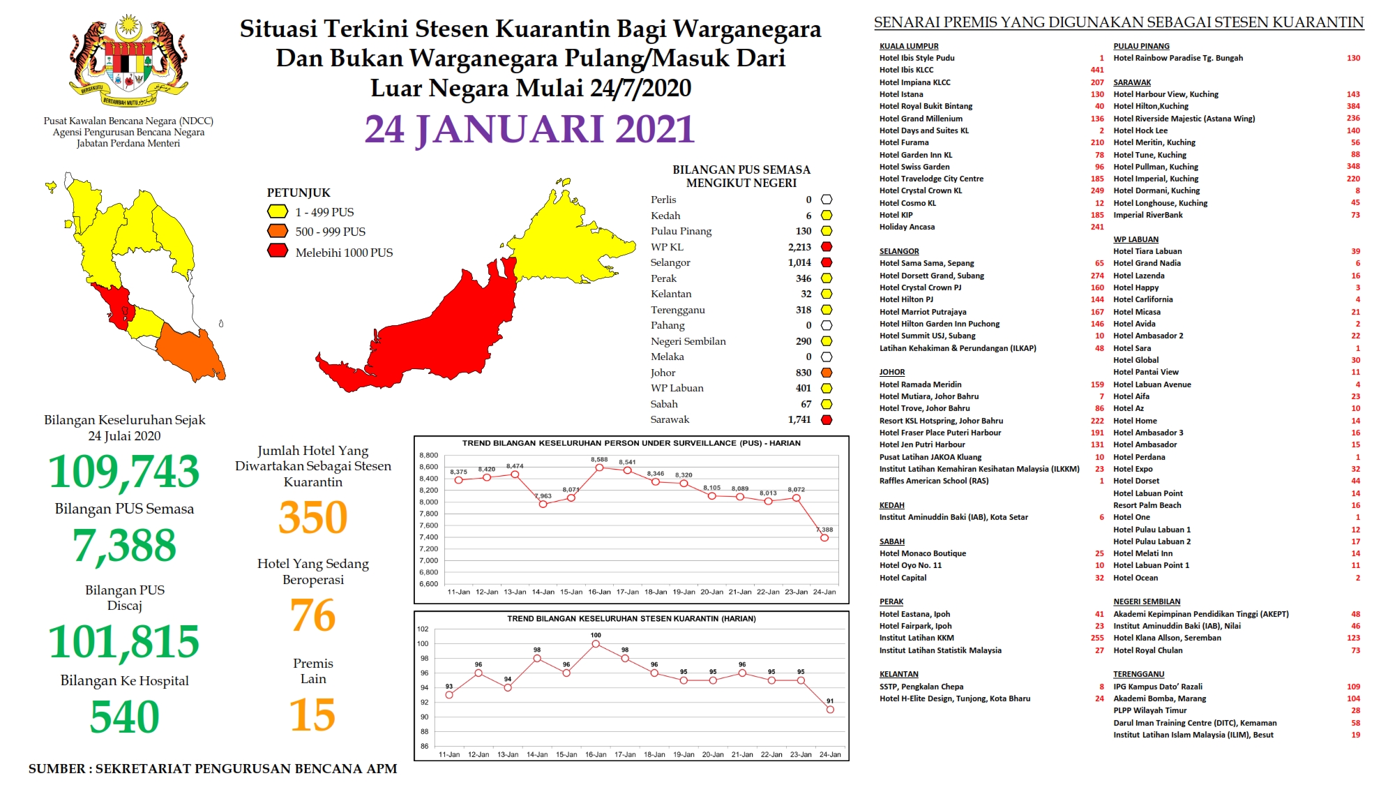 Situasi Terkini Stesen Kuarantin Bagi Warganegara Dan Bukan Warganegara Pulang/Masuk Dari Luar Negara 24/01/2021 Aiman Siaran Media 24 Januari 2021 Jumlah paparan: 754 Rating: ( 0 Rating ) Sila beri kadar Undi 1 Undi 2 Undi 3 Undi 4 Undi 5 Lihat / Muat Turun PDF Facebook Twitter Seterusnya Seterusnya