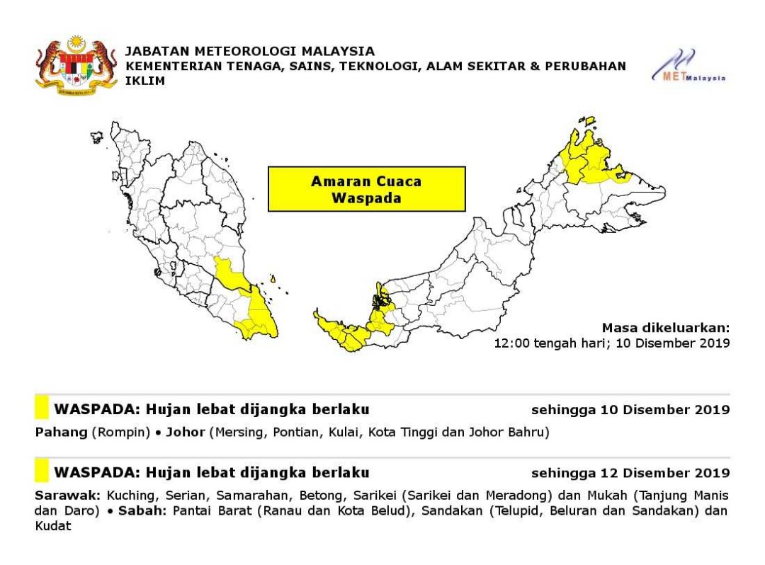Amaran Cuaca Waspada 10/12/2019 1200 PM Izam Cuaca 10 Disember 2019 Jumlah paparan: 970 Rating: ( 0 Rating ) Sila beri kadar Undi 1 Undi 2 Undi 3 Undi 4 Undi 5 Lihat / Muat Turun Facebook Twitter Seterusnya Seterusnya
