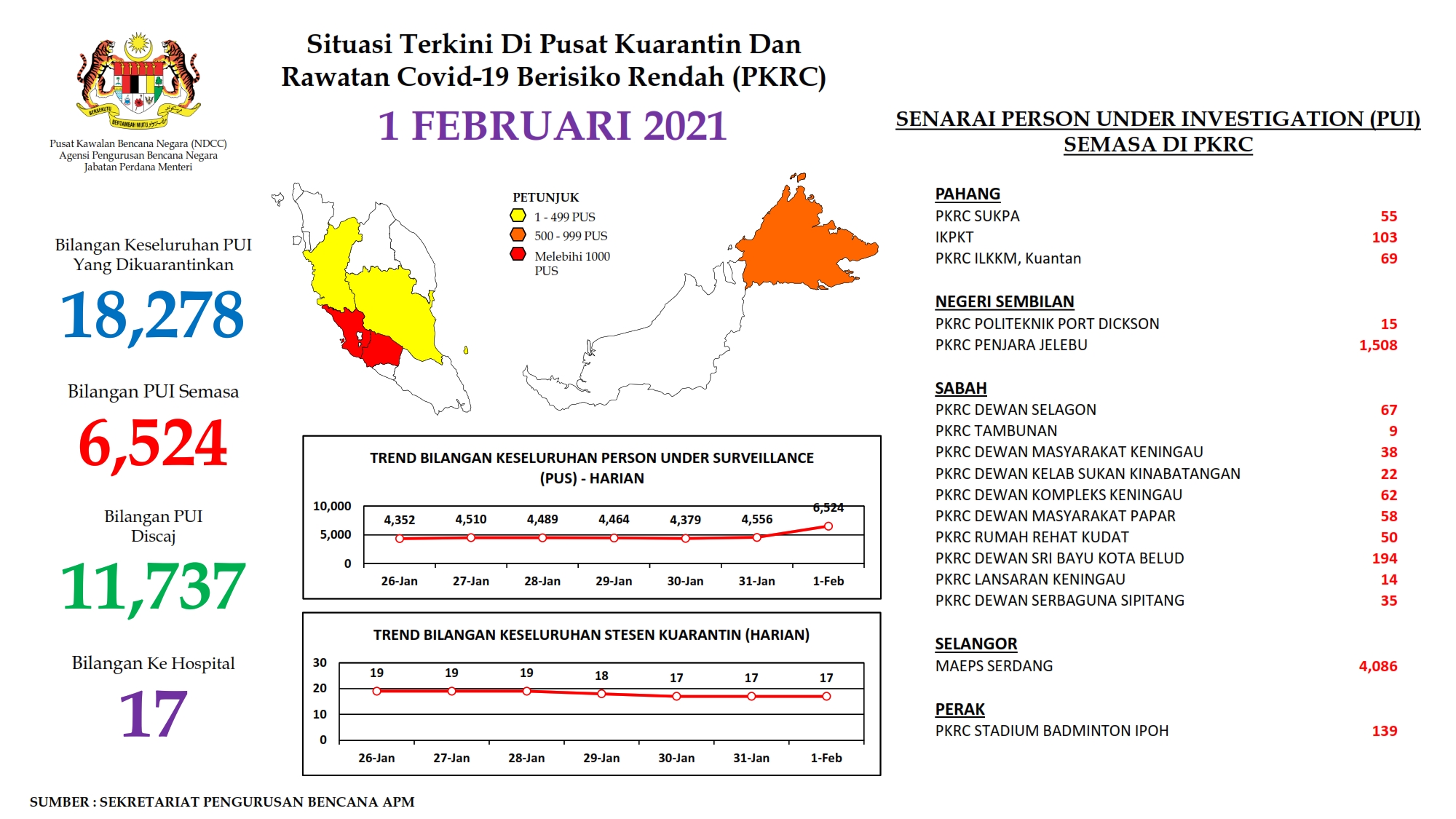 Situasi Terkini Di Pusat Kuarantin Dan Rawatan Covid-19 Berisiko Rendah 01/02/2021 Aiman Siaran Media 01 Februari 2021 Jumlah paparan: 542 Rating: ( 0 Rating ) Sila beri kadar Undi 1 Undi 2 Undi 3 Undi 4 Undi 5 Lihat / Muat Turun PDF Facebook Twitter Seterusnya Seterusnya