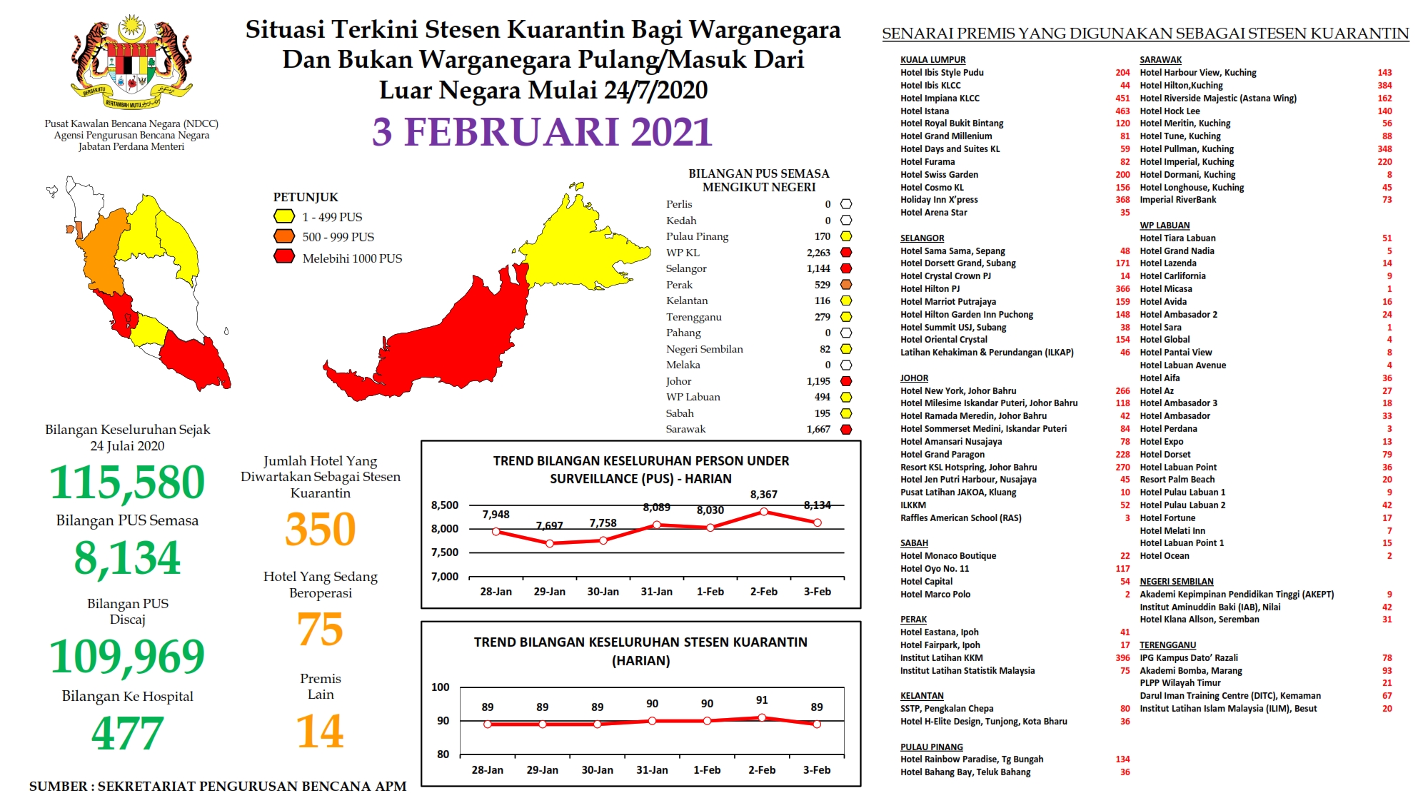 Situasi Terkini Stesen Kuarantin Bagi Warganegara Dan Bukan Warganegara Pulang/Masuk Dari Luar Negara 03/02/2021 Aiman Siaran Media 03 Februari 2021 Jumlah paparan: 866 Rating: ( 0 Rating ) Sila beri kadar Undi 1 Undi 2 Undi 3 Undi 4 Undi 5 Lihat / Muat Turun PDF Facebook Twitter Seterusnya Seterusnya