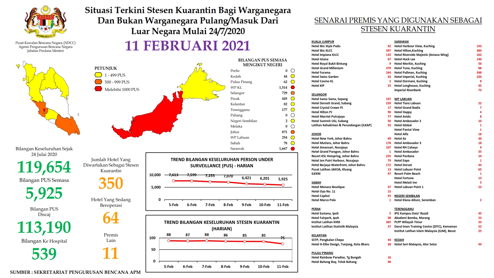 Situasi Terkini Stesen Kuarantin Bagi Warganegara Dan Bukan Warganegara Pulang/Masuk Dari Luar Negara 11/02/2021 Aiman Siaran Media 11 Februari 2021 Jumlah paparan: 742 Rating: ( 0 Rating ) Sila beri kadar Undi 1 Undi 2 Undi 3 Undi 4 Undi 5 Lihat / Muat Turun PDF Facebook Twitter Seterusnya Seterusnya