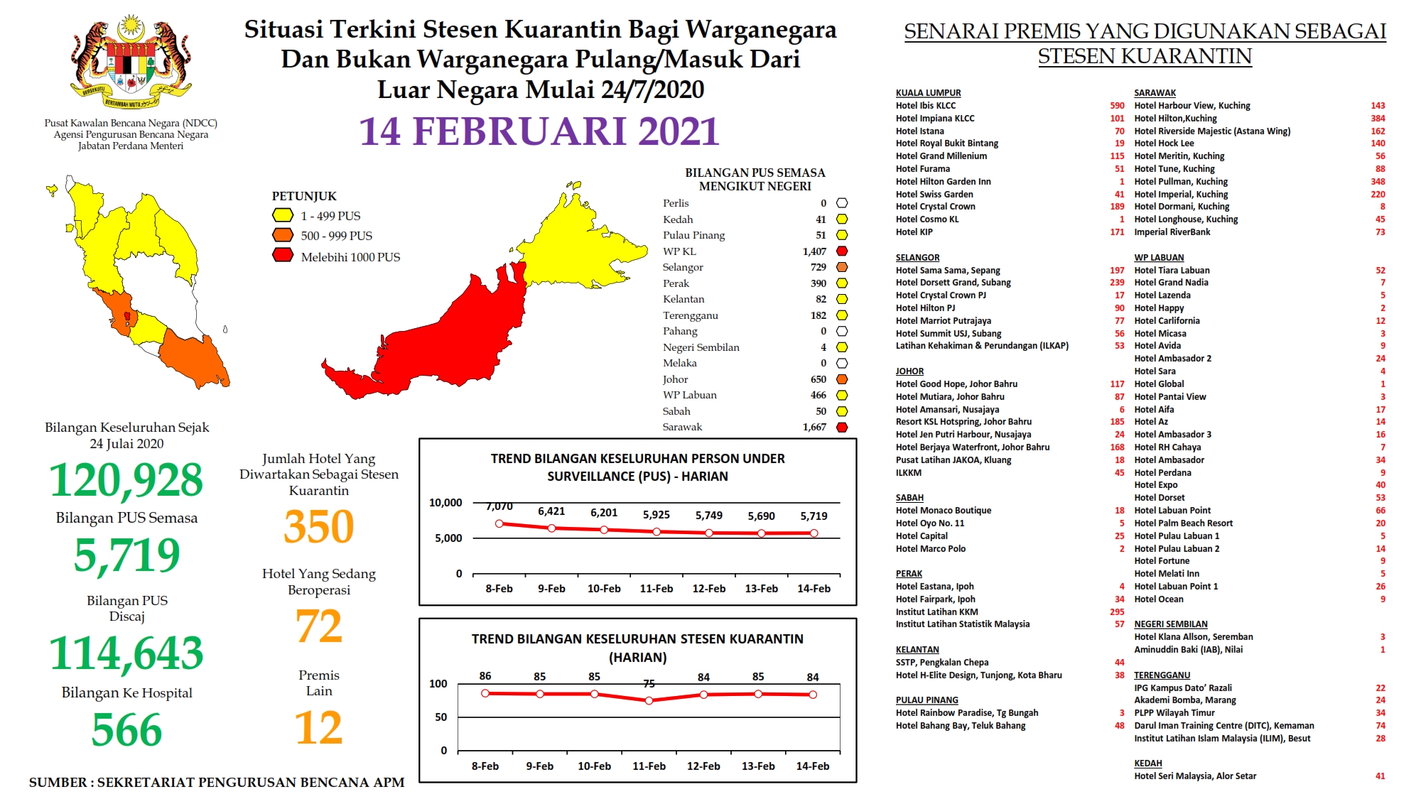 Situasi Terkini Stesen Kuarantin Bagi Warganegara Dan Bukan Warganegara Pulang/Masuk Dari Luar Negara 14/02/2021 Aiman Siaran Media 14 Februari 2021 Jumlah paparan: 625 Rating: ( 0 Rating ) Sila beri kadar Undi 1 Undi 2 Undi 3 Undi 4 Undi 5 Lihat / Muat Turun PDF Facebook Twitter Seterusnya Seterusnya