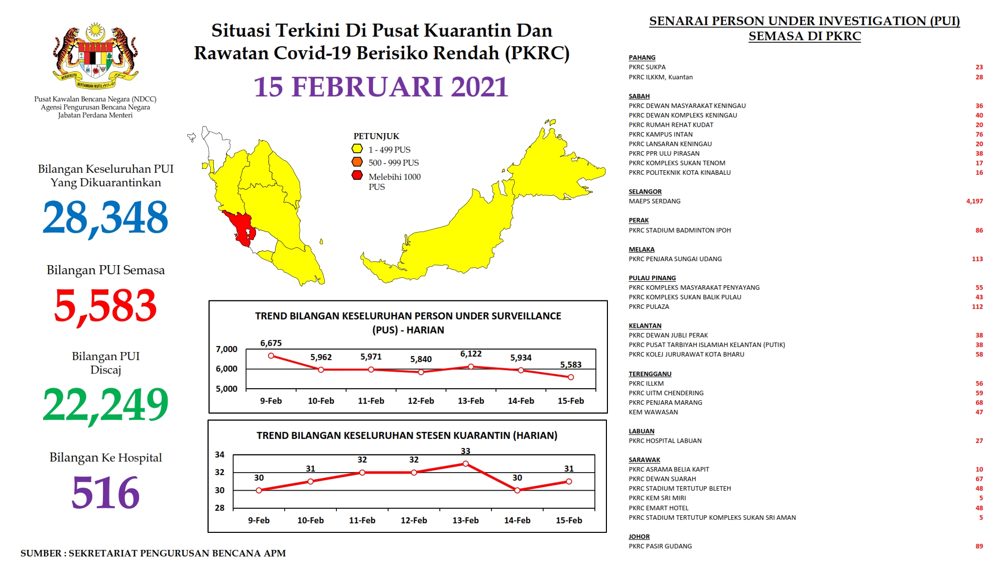 Situasi Terkini Di Pusat Kuarantin Dan Rawatan Covid-19 Berisiko Rendah 15/02/2021 Aiman Siaran Media 15 Februari 2021 Jumlah paparan: 774 Rating: ( 0 Rating ) Sila beri kadar Undi 1 Undi 2 Undi 3 Undi 4 Undi 5 Lihat / Muat Turun PDF Facebook Twitter Seterusnya Seterusnya
