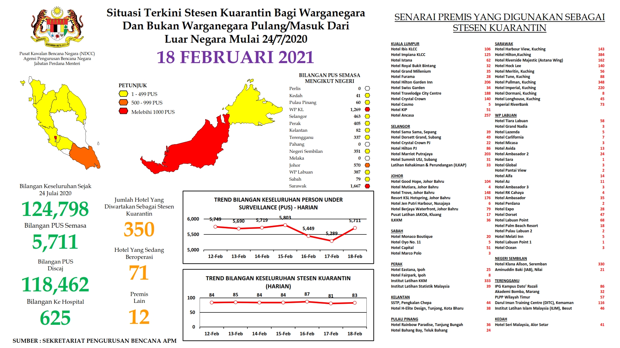 Situasi Terkini Stesen Kuarantin Bagi Warganegara Dan Bukan Warganegara Pulang/Masuk Dari Luar Negara 18/02/2021 Aiman Siaran Media 18 Februari 2021 Jumlah paparan: 730 Rating: ( 0 Rating ) Sila beri kadar Undi 1 Undi 2 Undi 3 Undi 4 Undi 5 Lihat / Muat Turun PDF Facebook Twitter Seterusnya Seterusnya