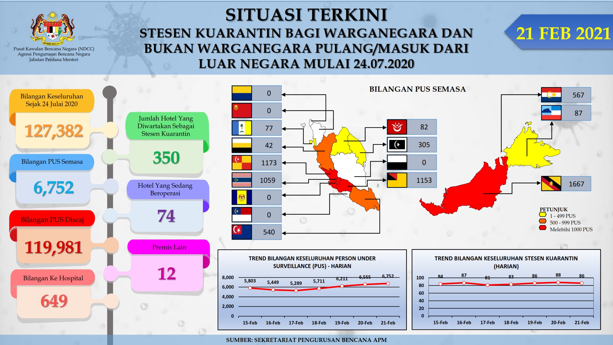 Situasi Terkini Stesen Kuarantin Bagi Warganegara Dan Bukan Warganegara Pulang/Masuk Dari Luar Negara 21/02/2021 Aiman Siaran Media 21 Februari 2021 Jumlah paparan: 936 Rating: ( 0 Rating ) Sila beri kadar Undi 1 Undi 2 Undi 3 Undi 4 Undi 5 Lihat / Muat Turun PDF Facebook Twitter Seterusnya Seterusnya