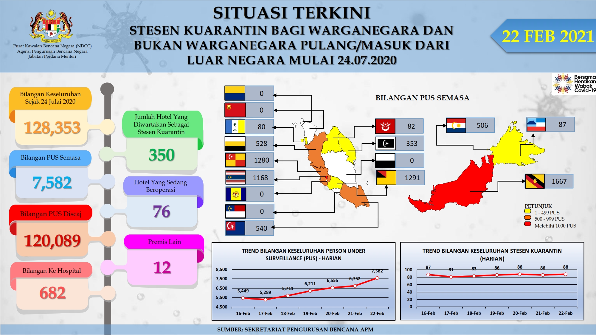 Situasi Terkini Stesen Kuarantin Bagi Warganegara Dan Bukan Warganegara Pulang/Masuk Dari Luar Negara 22/02/2021 Aiman Siaran Media 22 Februari 2021 Jumlah paparan: 669 Rating: ( 0 Rating ) Sila beri kadar Undi 1 Undi 2 Undi 3 Undi 4 Undi 5 Lihat / Muat Turun PDF Facebook Twitter Seterusnya Seterusnya
