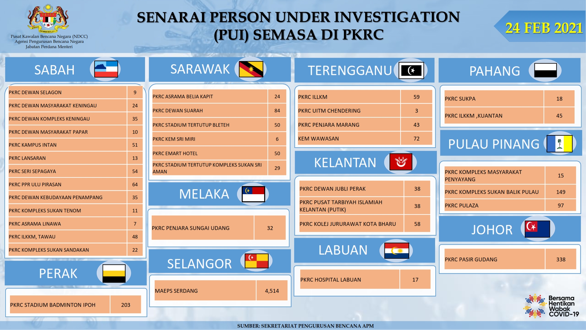 Situasi Terkini Di Pusat Kuarantin Dan Rawatan Covid-19 Berisiko Rendah 24/02/2021 Aiman Siaran Media 24 Februari 2021 Jumlah paparan: 738 Rating: ( 0 Rating ) Sila beri kadar Undi 1 Undi 2 Undi 3 Undi 4 Undi 5 Lihat / Muat Turun PDF Facebook Twitter Seterusnya Seterusnya