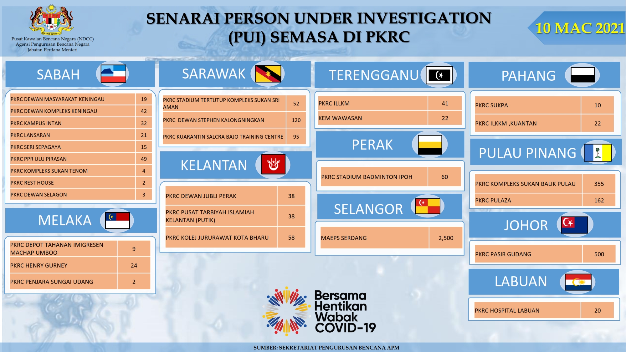 Situasi Terkini Di Pusat Kuarantin Dan Rawatan Covid-19 Berisiko Rendah 10/03/2021 Aiman Siaran Media 10 Mac 2021 Jumlah paparan: 720 Rating: ( 0 Rating ) Sila beri kadar Undi 1 Undi 2 Undi 3 Undi 4 Undi 5 Lihat / Muat Turun PDF Facebook Twitter Seterusnya Seterusnya