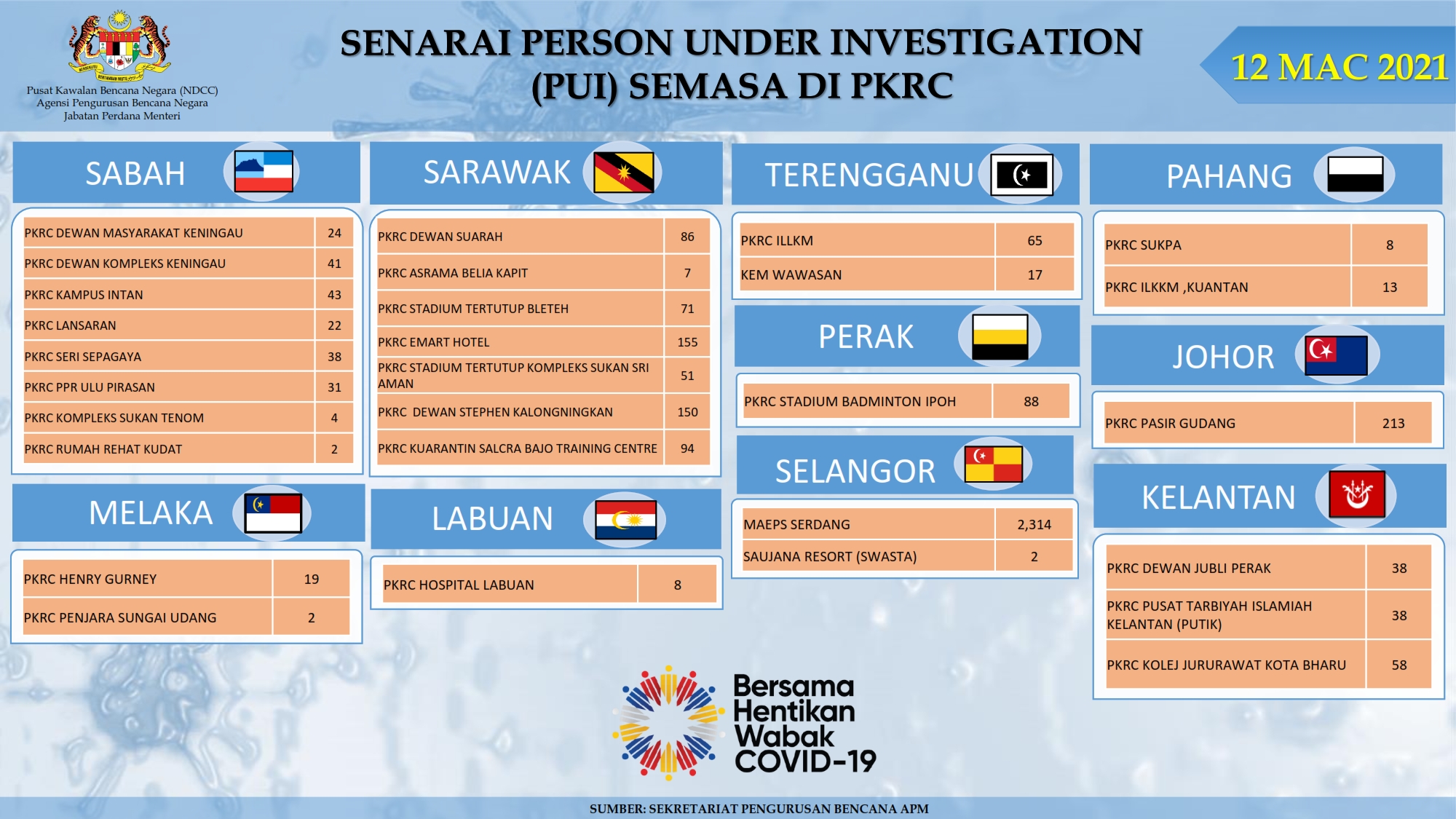 Situasi Terkini Di Pusat Kuarantin Dan Rawatan Covid-19 Berisiko Rendah 12/03/2021 Afrina Siaran Media 12 Mac 2021 Jumlah paparan: 1126 Rating: ( 0 Rating ) Sila beri kadar Undi 1 Undi 2 Undi 3 Undi 4 Undi 5 Lihat / Muat Turun PDF Facebook Twitter Seterusnya Seterusnya
