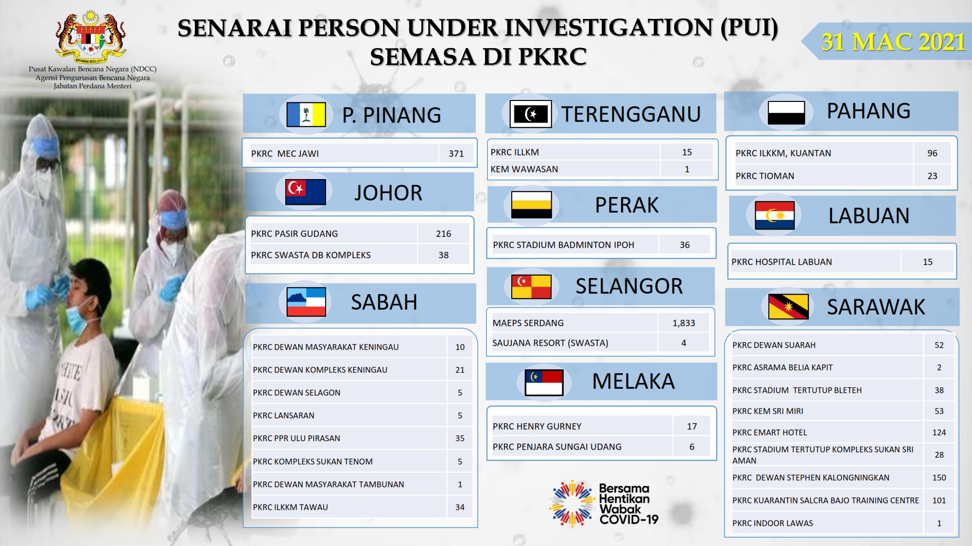 Situasi Terkini Di Pusat Kuarantin Dan Rawatan Covid-19 Berisiko Rendah 31/03/2021 Aiman Siaran Media 31 Mac 2021 Jumlah paparan: 1028 Rating: ( 0 Rating ) Sila beri kadar Undi 1 Undi 2 Undi 3 Undi 4 Undi 5 Lihat / Muat Turun PDF Facebook Twitter Seterusnya Seterusnya