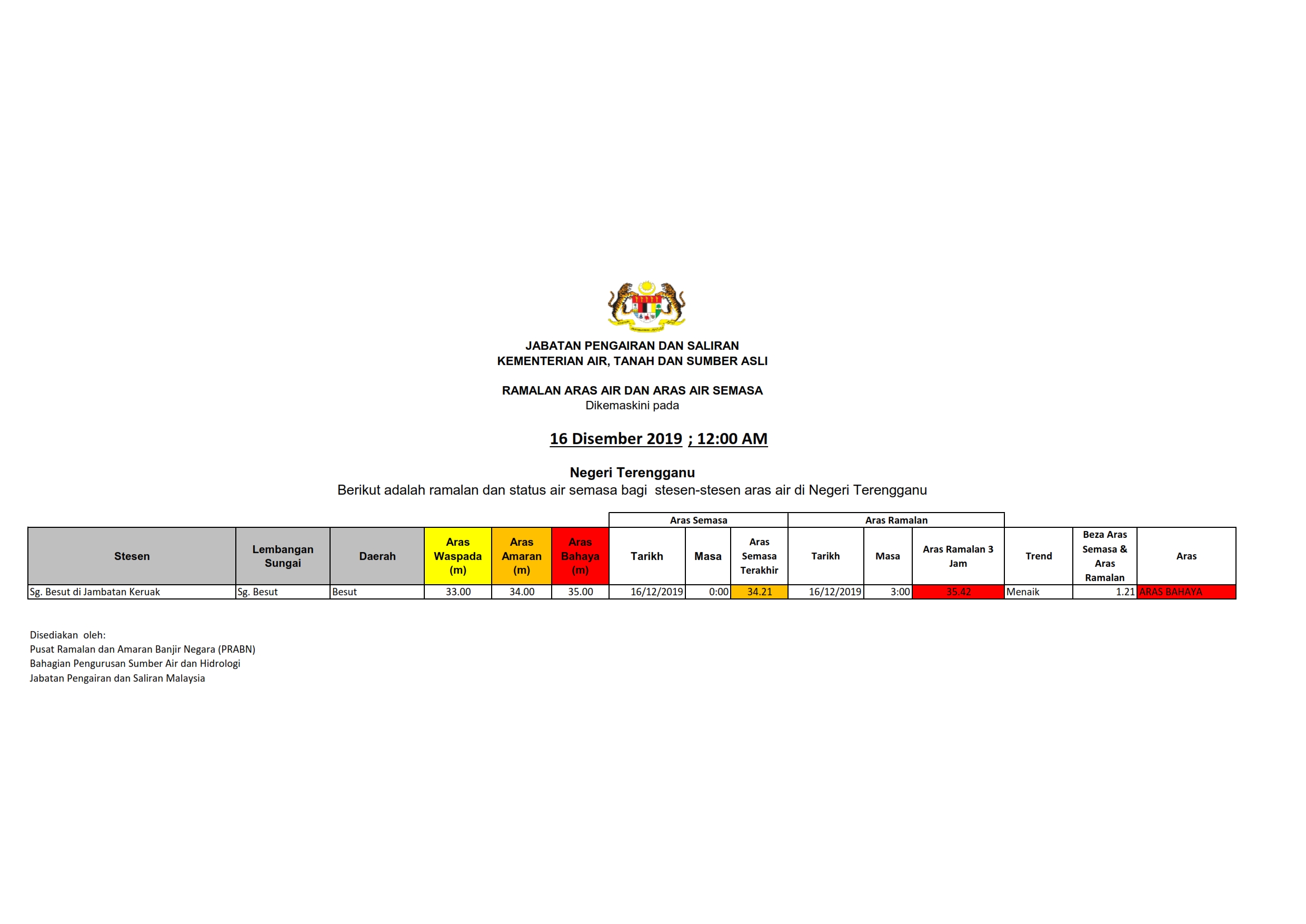 Ramalan Aras Air Terengganu 16/12/2019 1200 AM Aiman Cuaca 16 Disember 2019 Jumlah paparan: 926 Rating: ( 0 Rating ) Sila beri kadar Undi 1 Undi 2 Undi 3 Undi 4 Undi 5 Lihat / Muat Turun PDF Muat Turun JPG 1 Facebook Twitter Seterusnya Seterusnya
