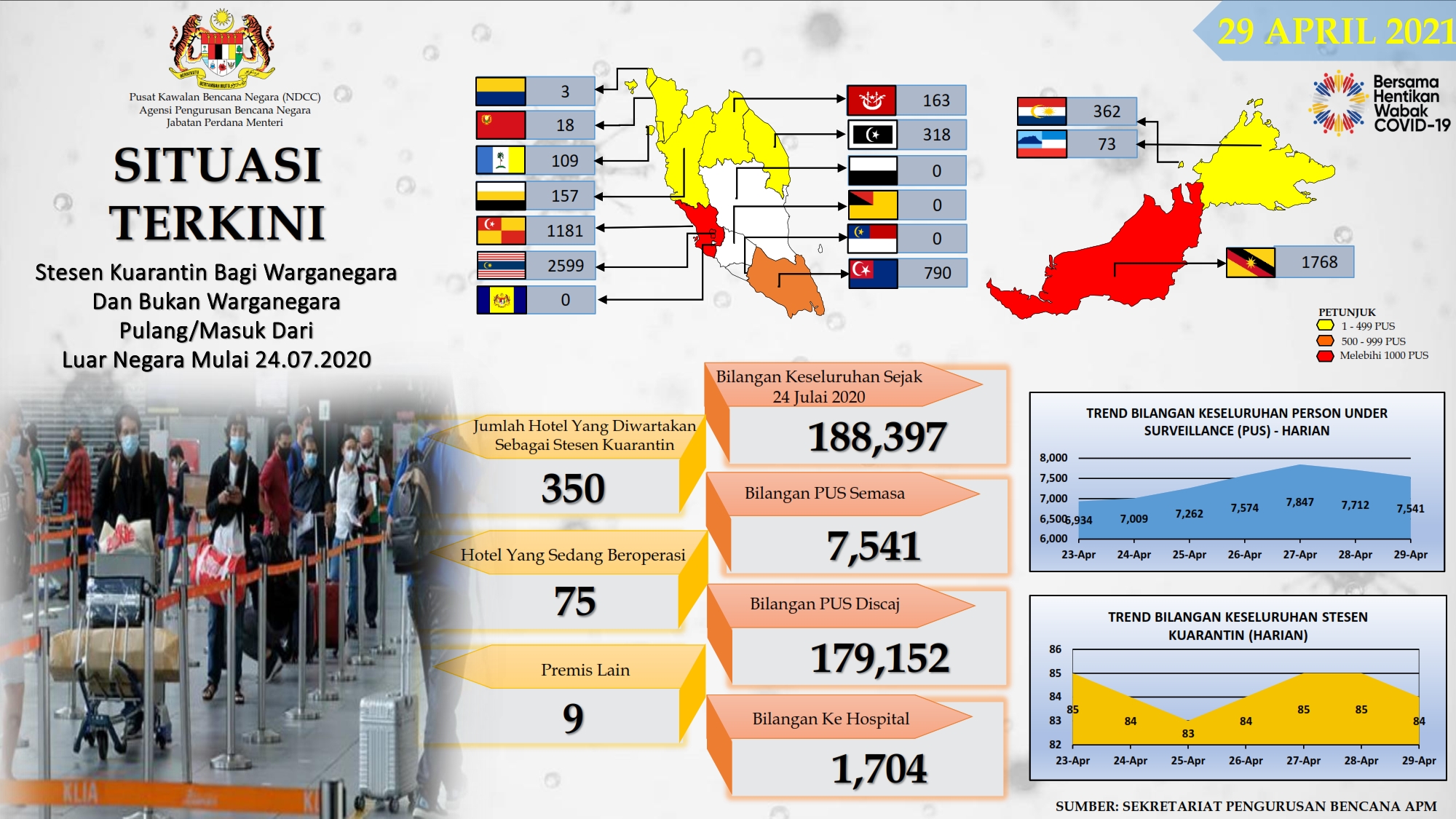 Situasi Terkini Stesen Kuarantin Bagi Warganegara Dan Bukan Warganegara Pulang/Masuk Dari Luar Negara 29/04/2021 Afrina Siaran Media 29 April 2021 Jumlah paparan: 821 Rating: ( 0 Rating ) Sila beri kadar Undi 1 Undi 2 Undi 3 Undi 4 Undi 5 Lihat / Muat Turun PDF Facebook Twitter Seterusnya Seterusnya