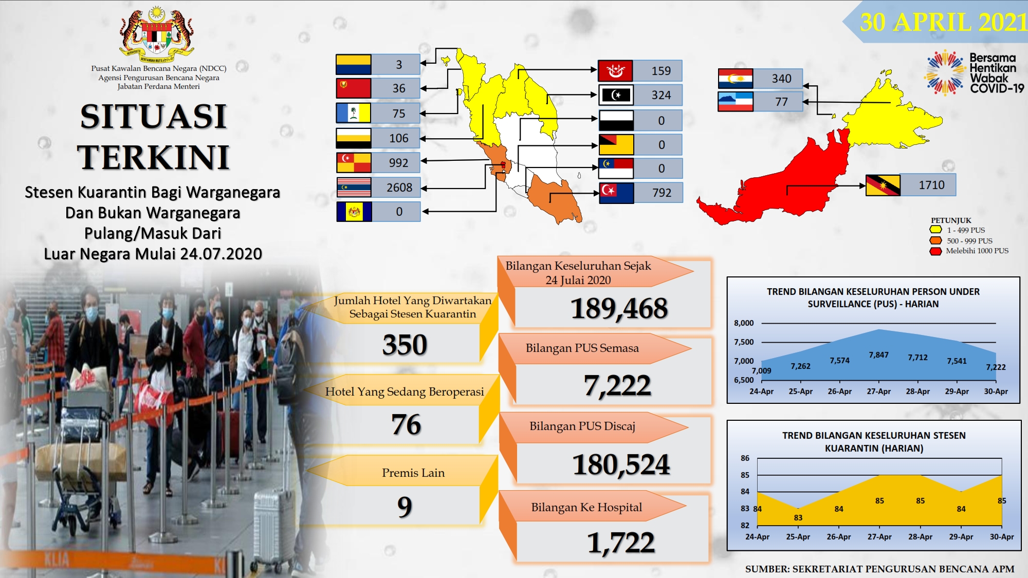 Situasi Terkini Stesen Kuarantin Bagi Warganegara Dan Bukan Warganegara Pulang/Masuk Dari Luar Negara 30/04/2021 Afrina Siaran Media 30 April 2021 Jumlah paparan: 1120 Rating: ( 0 Rating ) Sila beri kadar Undi 1 Undi 2 Undi 3 Undi 4 Undi 5 Lihat / Muat Turun PDF Facebook Twitter Seterusnya Seterusnya