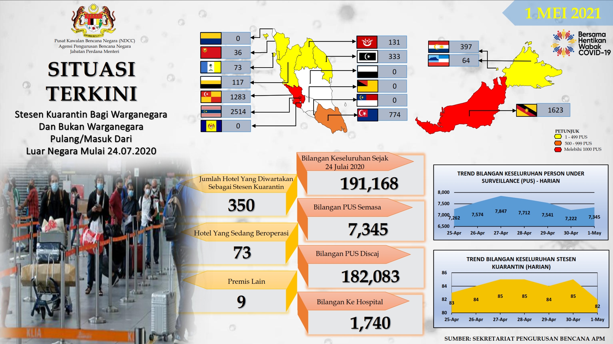 Situasi Terkini Stesen Kuarantin Bagi Warganegara Dan Bukan Warganegara Pulang/Masuk Dari Luar Negara 01/05/2021 Aiman Siaran Media 01 Mei 2021 Jumlah paparan: 794 Rating: ( 0 Rating ) Sila beri kadar Undi 1 Undi 2 Undi 3 Undi 4 Undi 5 Lihat / Muat Turun PDF Facebook Twitter Seterusnya Seterusnya