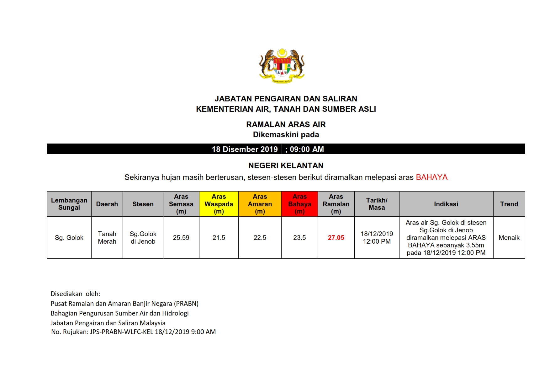 Ramalan Aras Air Kelantan 18/12/2019 0900 AM Asrul Cuaca 18 Disember 2019 Jumlah paparan: 1132 Rating: ( 0 Rating ) Sila beri kadar Undi 1 Undi 2 Undi 3 Undi 4 Undi 5 Lihat / Muat Turun PDF Muat Turun JPG 1 Facebook Twitter Seterusnya Seterusnya