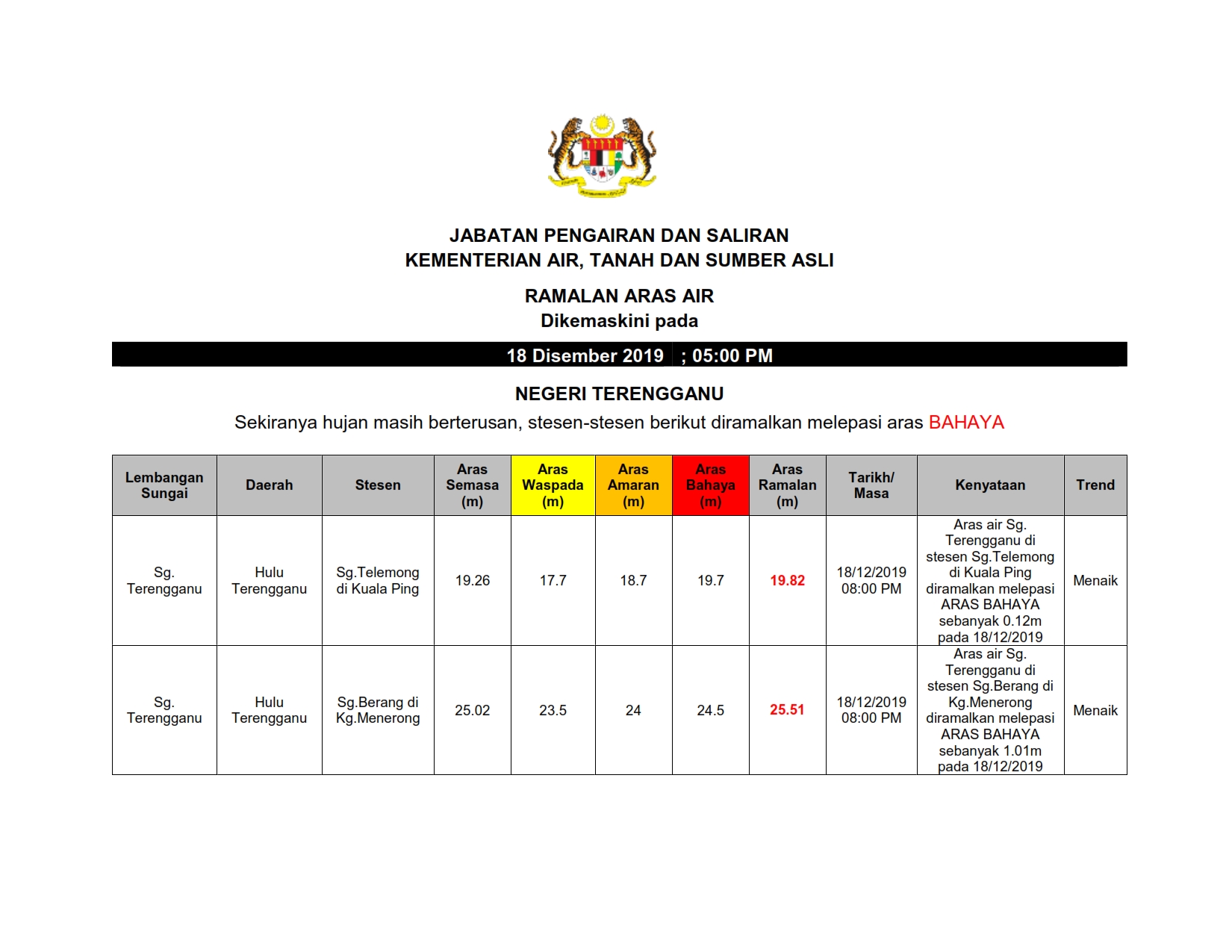 Ramalan Aras Air Terengganu 18/12/2019 0500 PM Aiman Cuaca 18 Disember 2019 Jumlah paparan: 1103 Rating: ( 0 Rating ) Sila beri kadar Undi 1 Undi 2 Undi 3 Undi 4 Undi 5 Lihat / Muat Turun PDF Muat Turun JPG 1 Muat Turun JPG 2 Facebook Twitter Seterusnya Seterusnya