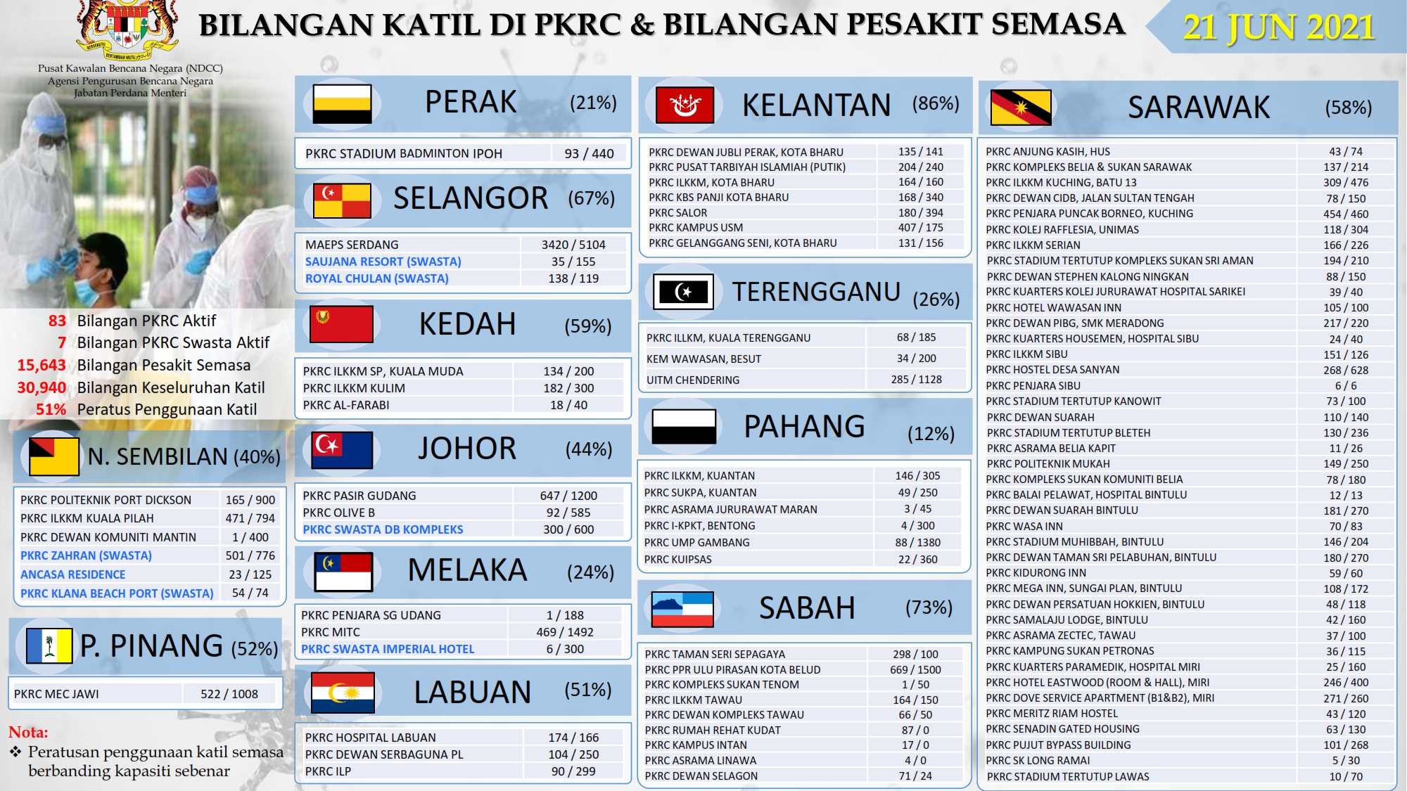 Situasi Terkini Di Pusat Kuarantin Dan Rawatan Covid-19 Berisiko Rendah 21/06/2021 Afrina Siaran Media 21 Jun 2021 Jumlah paparan: 919 Rating: ( 0 Rating ) Sila beri kadar Undi 1 Undi 2 Undi 3 Undi 4 Undi 5 Lihat / Muat Turun PDF Facebook Twitter Seterusnya Seterusnya