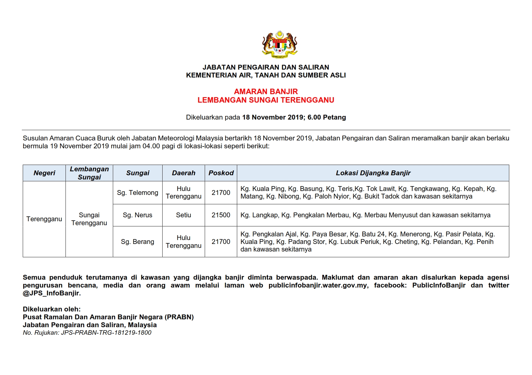 Amaran Banjir Terengganu 18/12/2019 0600 PM Aiman Cuaca 18 Disember 2019 Jumlah paparan: 1293 Rating: ( 0 Rating ) Sila beri kadar Undi 1 Undi 2 Undi 3 Undi 4 Undi 5 Muat Turun PDF Muat Turun JPG 1 Facebook Twitter Seterusnya Seterusnya