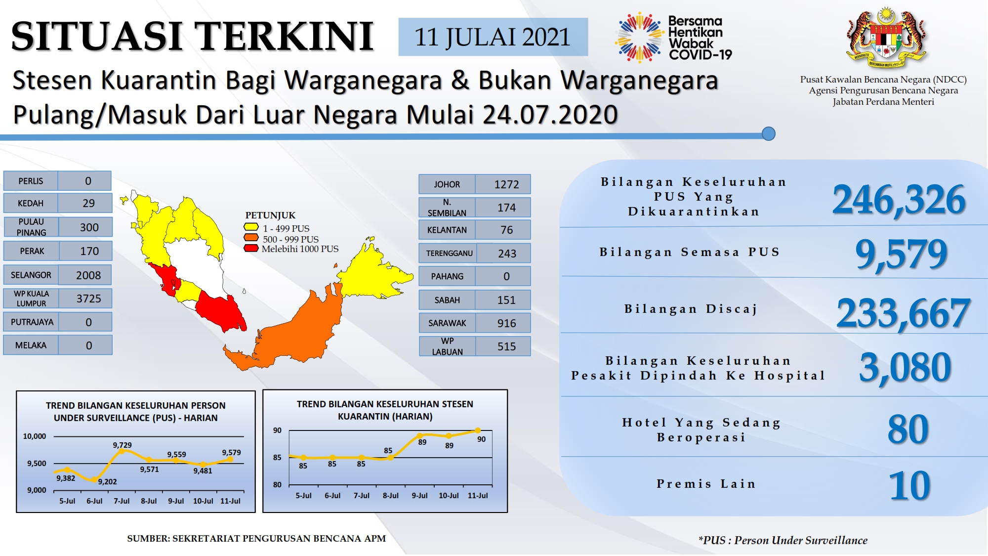 Situasi Terkini Stesen Kuarantin Bagi Warganegara Dan Bukan Warganegara Pulang/Masuk Dari Luar Negara 11/07/2021 Aiman Siaran Media 11 Julai 2021 Jumlah paparan: 1020 Rating: ( 0 Rating ) Sila beri kadar Undi 1 Undi 2 Undi 3 Undi 4 Undi 5 Lihat / Muat Turun PDF Facebook Twitter Seterusnya Seterusnya