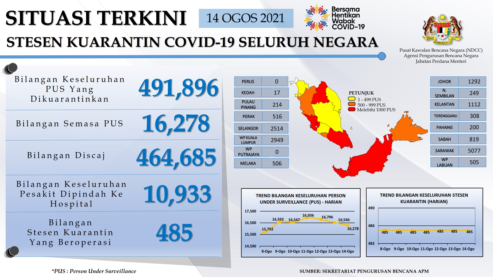 Situasi Terkini Stesen Kuarantin COVID-19 Seluruh Negara 14/08/2021 Aiman Siaran Media 14 Ogos 2021 Jumlah paparan: 897 Rating: ( 0 Rating ) Sila beri kadar Undi 1 Undi 2 Undi 3 Undi 4 Undi 5 Lihat / Muat Turun PDF Facebook Twitter Seterusnya Seterusnya