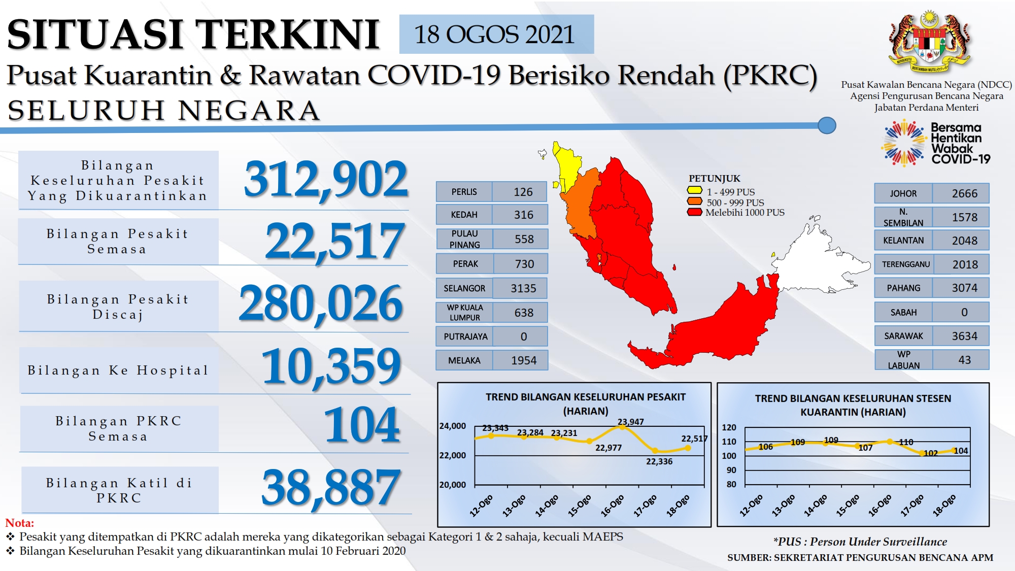 Situasi Terkini Di Pusat Kuarantin Dan Rawatan Covid-19 Berisiko Rendah 18/08/2021 Aiman Siaran Media 18 Ogos 2021 Jumlah paparan: 507 Rating: ( 0 Rating ) Sila beri kadar Undi 1 Undi 2 Undi 3 Undi 4 Undi 5 Lihat / Muat Turun PDF Facebook Twitter Seterusnya Seterusnya
