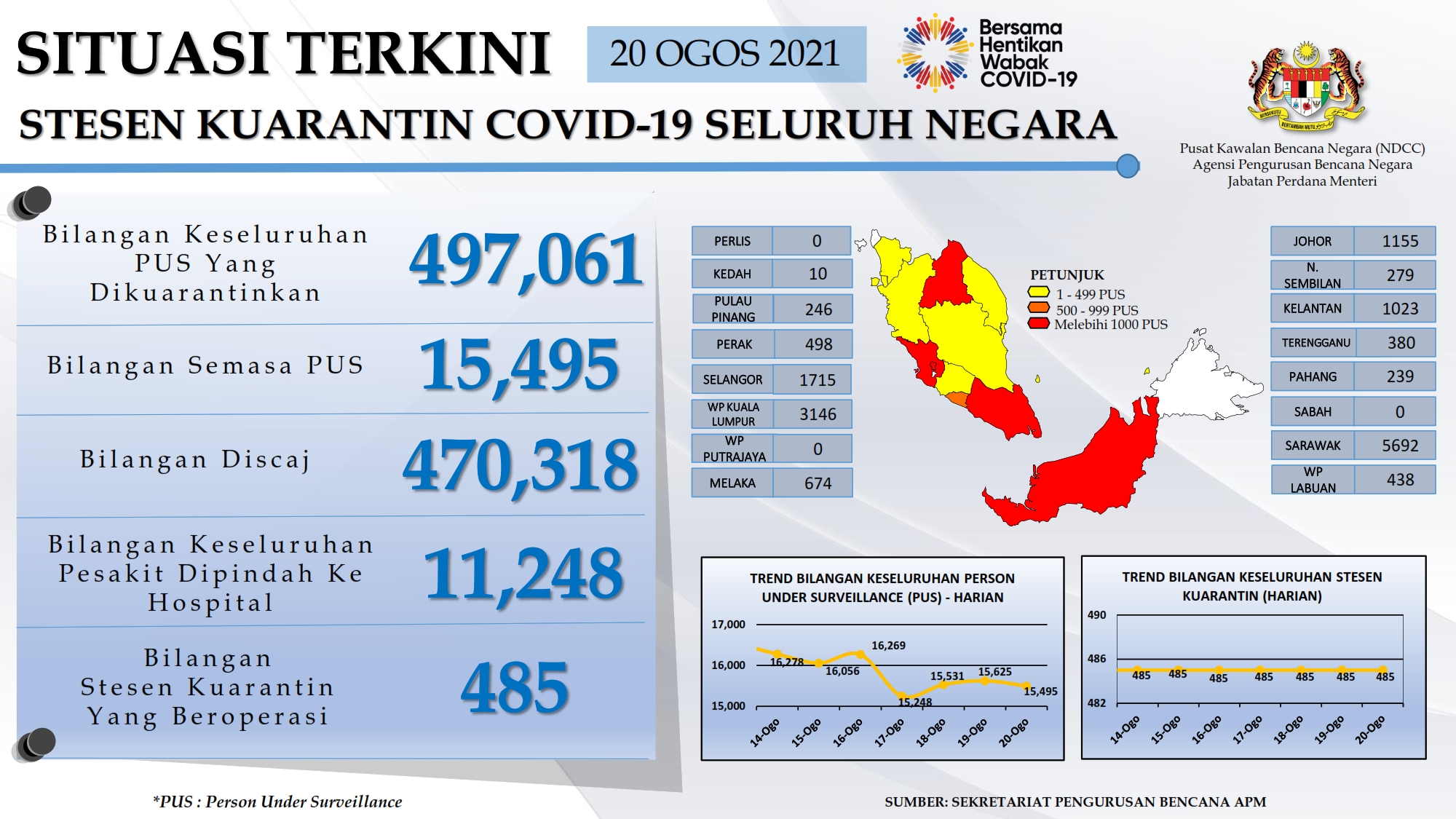 Situasi Terkini Stesen Kuarantin COVID-19 Seluruh Negara 20/08/2021 Aiman Siaran Media 20 Ogos 2021 Jumlah paparan: 1009 Rating: ( 0 Rating ) Sila beri kadar Undi 1 Undi 2 Undi 3 Undi 4 Undi 5 Lihat / Muat Turun PDF Facebook Twitter Seterusnya Seterusnya