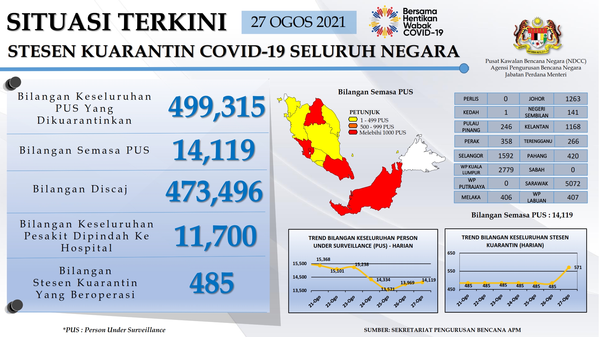 Situasi Terkini Stesen Kuarantin COVID-19 Seluruh Negara 27/08/2021 Aiman Siaran Media 27 Ogos 2021 Jumlah paparan: 623 Rating: ( 0 Rating ) Sila beri kadar Undi 1 Undi 2 Undi 3 Undi 4 Undi 5 Lihat / Muat Turun PDF Facebook Twitter Seterusnya Seterusnya