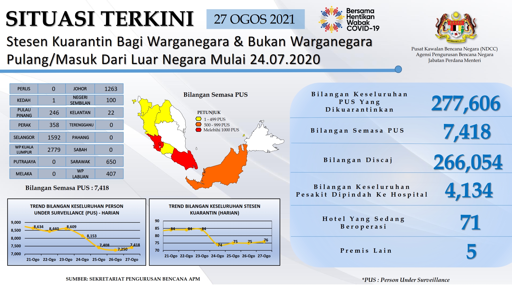 Situasi Terkini Stesen Kuarantin Bagi Warganegara Dan Bukan Warganegara Pulang/Masuk Dari Luar Negara 27/08/2021 Aiman Siaran Media 27 Ogos 2021 Jumlah paparan: 865 Rating: ( 0 Rating ) Sila beri kadar Undi 1 Undi 2 Undi 3 Undi 4 Undi 5 Lihat / Muat Turun PDF Facebook Twitter Seterusnya Seterusnya
