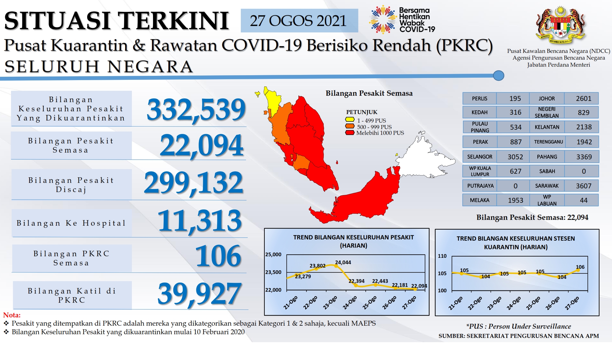 Situasi Terkini Stesen Kuarantin & Rawatan Covid-19 Berisiko Rendah (PKRC) 27/08/2021 Aiman Siaran Media 27 Ogos 2021 Jumlah paparan: 693 Rating: ( 0 Rating ) Sila beri kadar Undi 1 Undi 2 Undi 3 Undi 4 Undi 5 Lihat / Muat Turun PDF Facebook Twitter Seterusnya Seterusnya