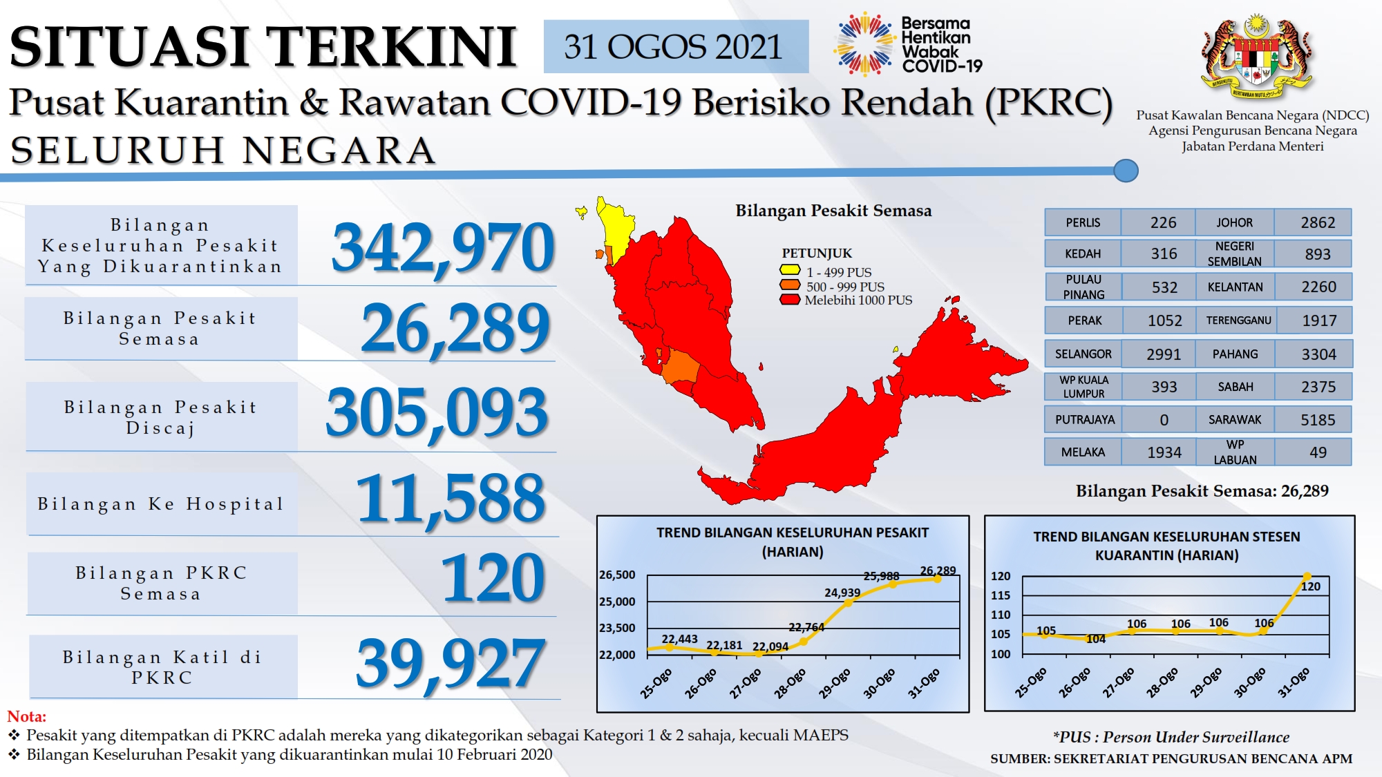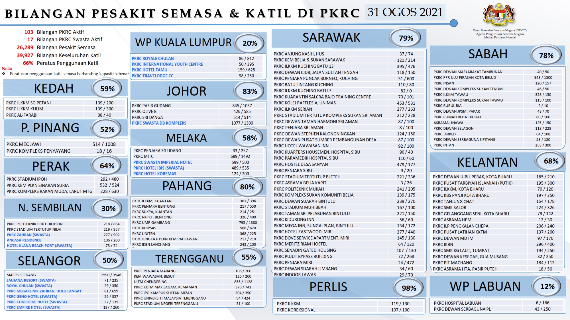 Situasi Terkini Stesen Kuarantin & Rawatan Covid-19 Berisiko Rendah (PKRC) 31/08/2021 Aiman Siaran Media 31 Ogos 2021 Jumlah paparan: 888 Rating: ( 0 Rating ) Sila beri kadar Undi 1 Undi 2 Undi 3 Undi 4 Undi 5 Lihat / Muat Turun PDF Facebook Twitter Seterusnya Seterusnya
