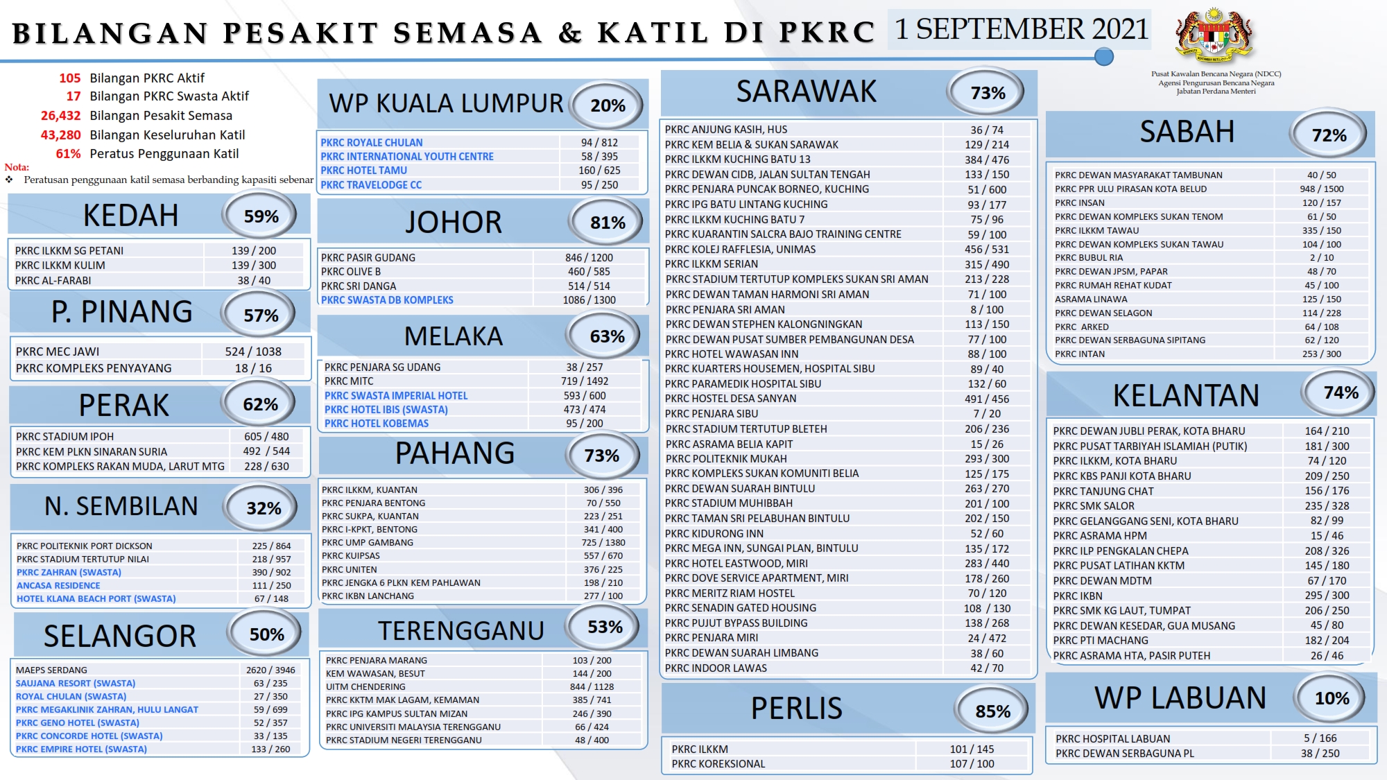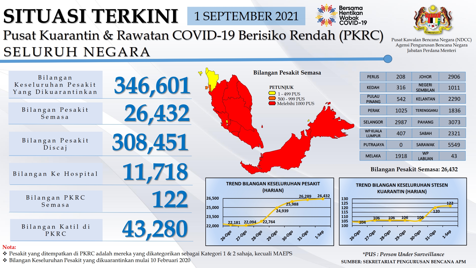 Situasi Terkini Stesen Kuarantin & Rawatan Covid-19 Berisiko Rendah (PKRC) 01/09/2021 Aiman Siaran Media 01 September 2021 Jumlah paparan: 843 Rating: ( 0 Rating ) Sila beri kadar Undi 1 Undi 2 Undi 3 Undi 4 Undi 5 Lihat / Muat Turun PDF Facebook Twitter Seterusnya Seterusnya