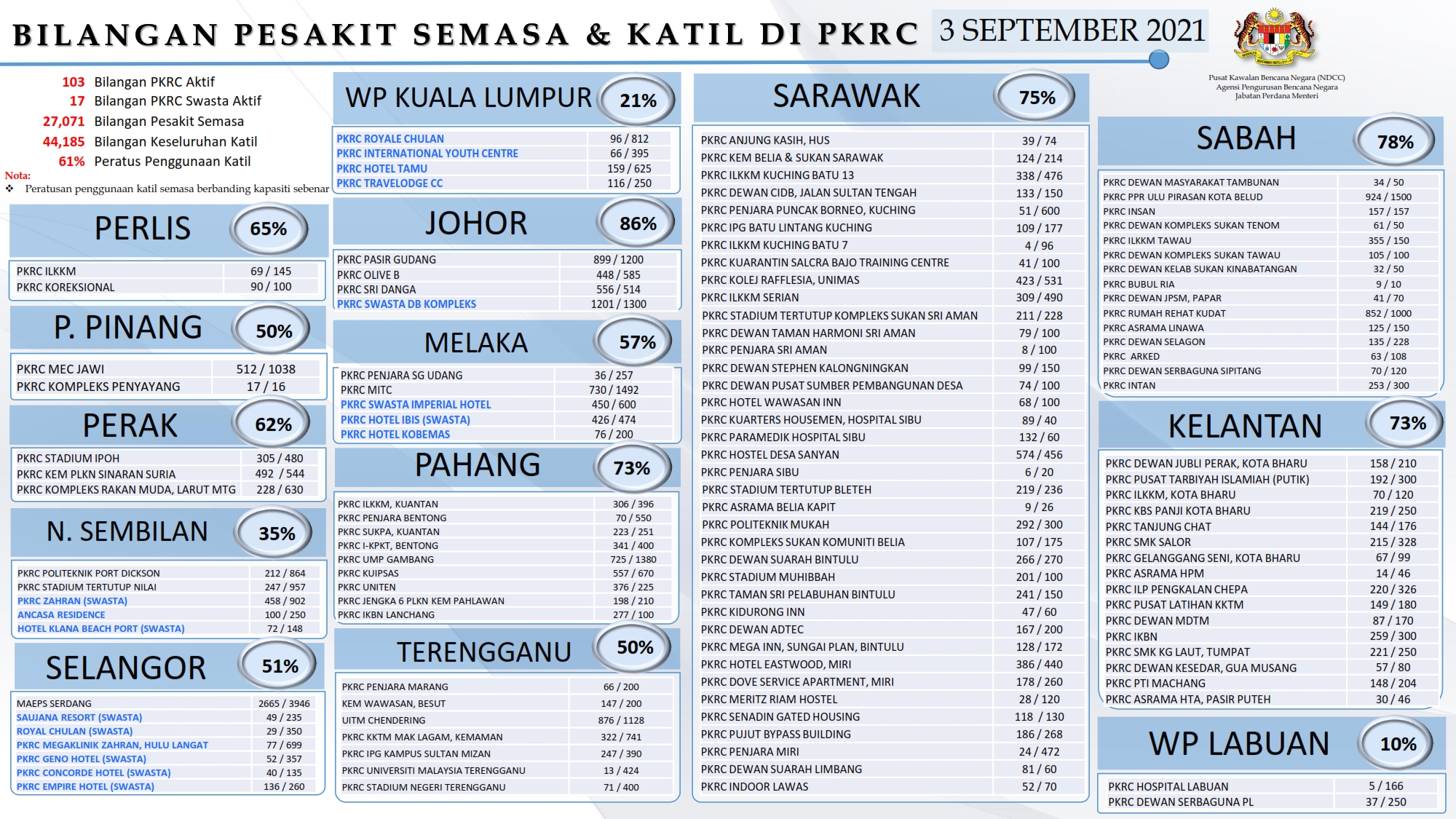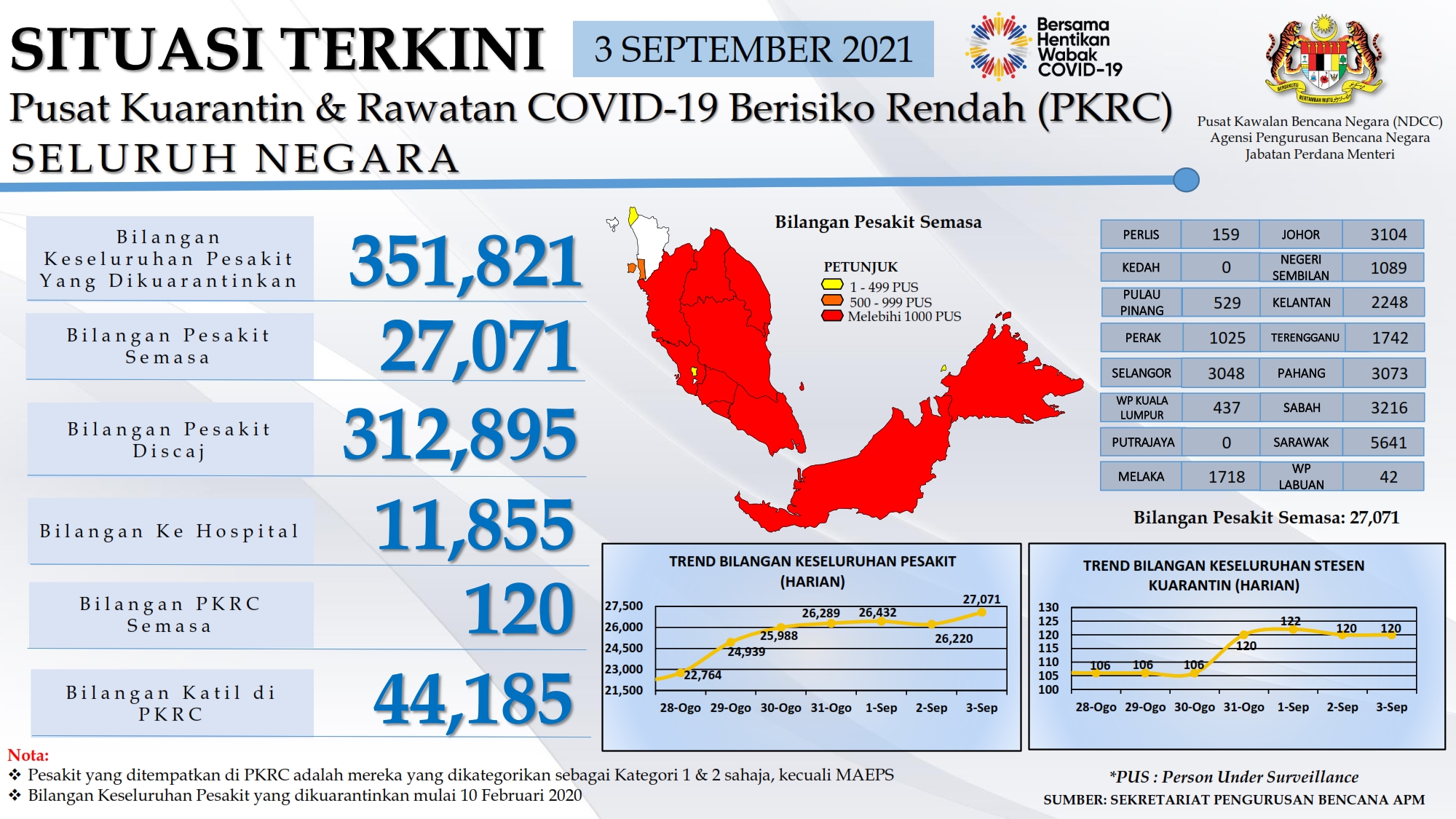 Situasi Terkini Stesen Kuarantin & Rawatan Covid-19 Berisiko Rendah (PKRC) 03/09/2021 Aiman Siaran Media 03 September 2021 Jumlah paparan: 643 Rating: ( 0 Rating ) Sila beri kadar Undi 1 Undi 2 Undi 3 Undi 4 Undi 5 Lihat / Muat Turun PDF Facebook Twitter Seterusnya Seterusnya