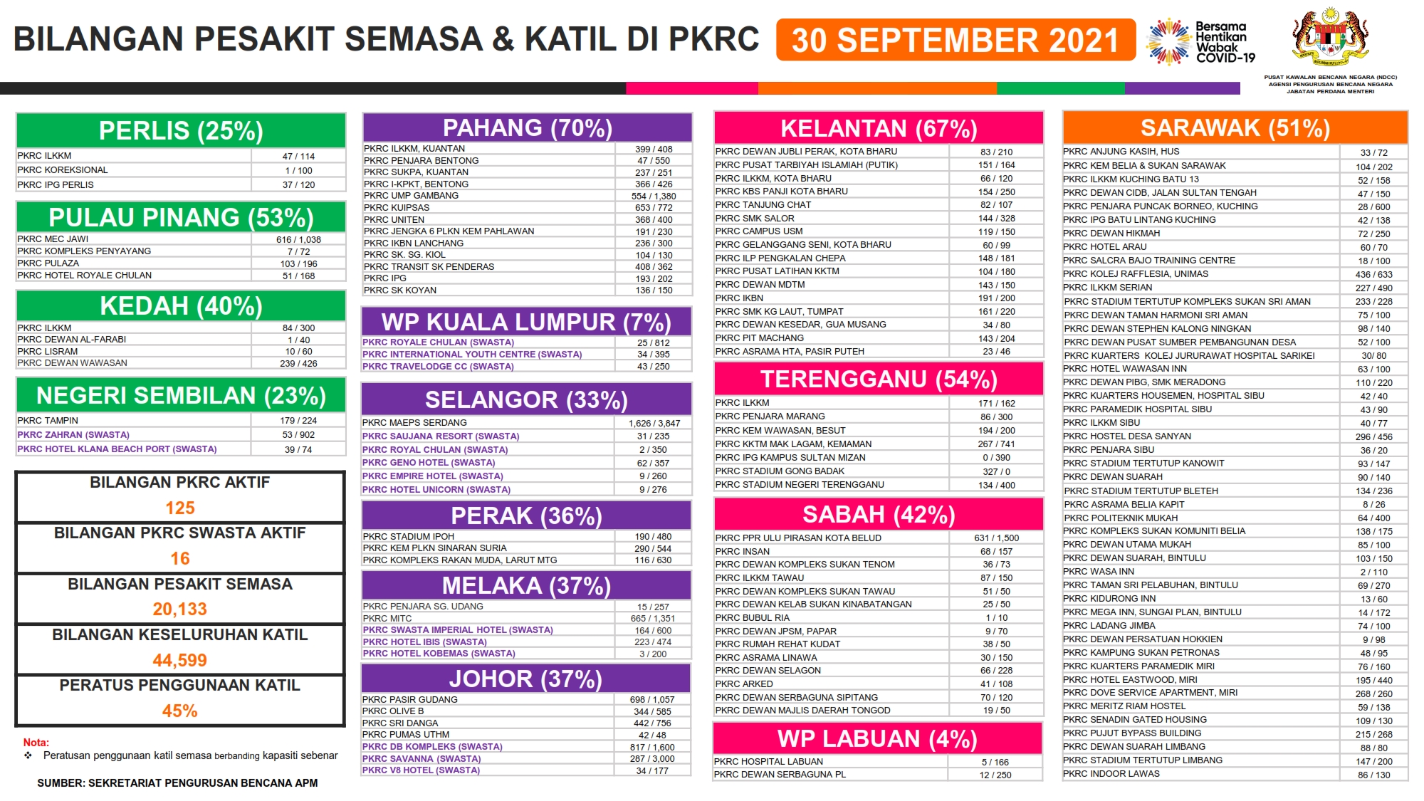 Situasi Terkini Stesen Kuarantin & Rawatan Covid-19 Berisiko Rendah (PKRC) 30/09/2021 Aiman Siaran Media 30 September 2021 Jumlah paparan: 858 Rating: ( 0 Rating ) Sila beri kadar Undi 1 Undi 2 Undi 3 Undi 4 Undi 5 Lihat / Muat Turun PDF Facebook Twitter Seterusnya Seterusnya