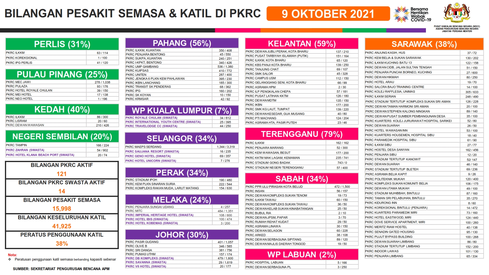 Situasi Terkini Stesen Kuarantin & Rawatan Covid-19 Berisiko Rendah (PKRC) 09/10/2021 Aiman Siaran Media 09 Oktober 2021 Jumlah paparan: 677 Rating: ( 0 Rating ) Sila beri kadar Undi 1 Undi 2 Undi 3 Undi 4 Undi 5 Lihat / Muat Turun PDF Facebook Twitter Seterusnya Seterusnya