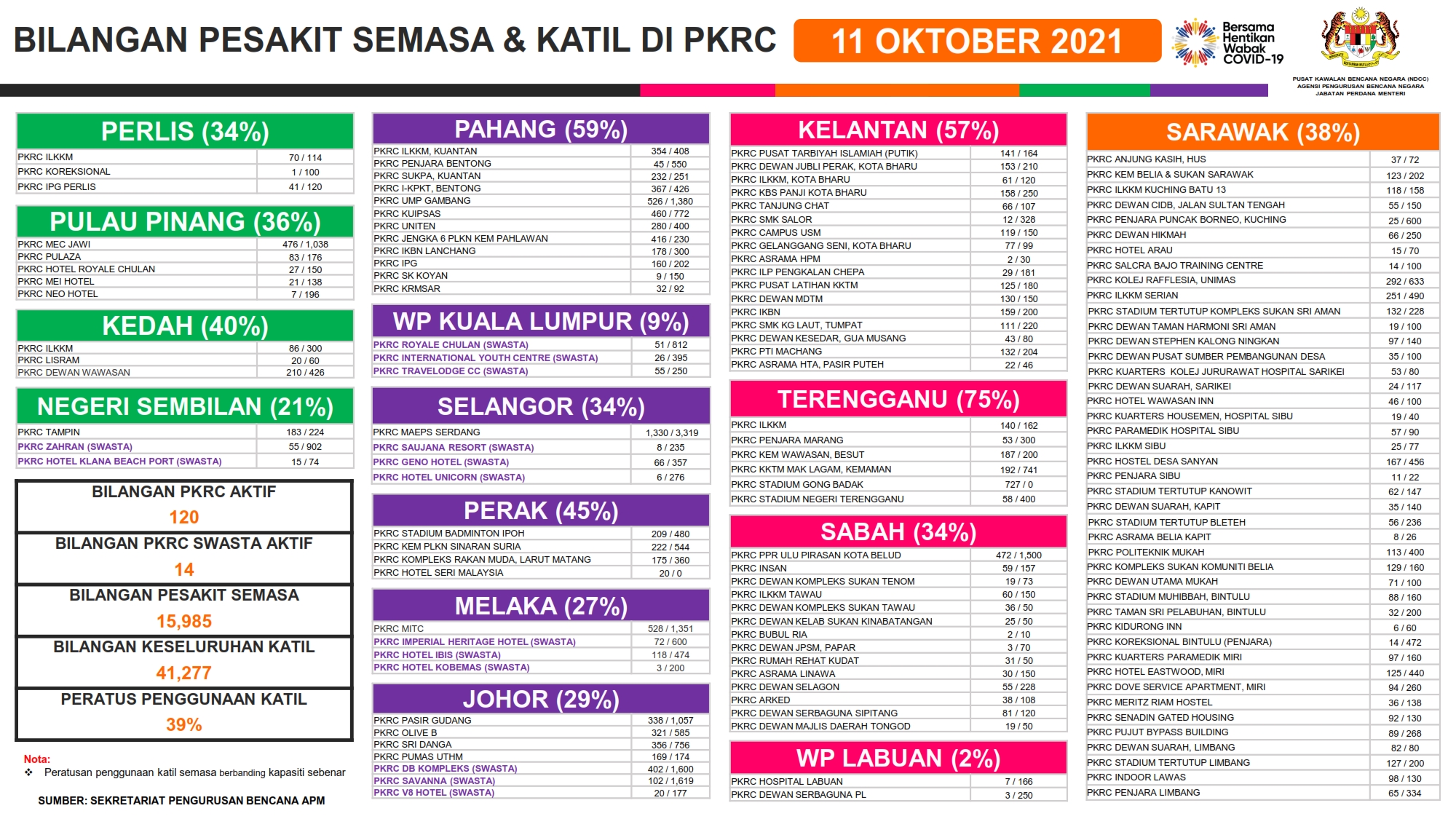 Situasi Terkini Stesen Kuarantin & Rawatan Covid-19 Berisiko Rendah (PKRC) 11/10/2021 Aiman Siaran Media 11 Oktober 2021 Jumlah paparan: 1085 Rating: ( 0 Rating ) Sila beri kadar Undi 1 Undi 2 Undi 3 Undi 4 Undi 5 Lihat / Muat Turun PDF Facebook Twitter Seterusnya Seterusnya