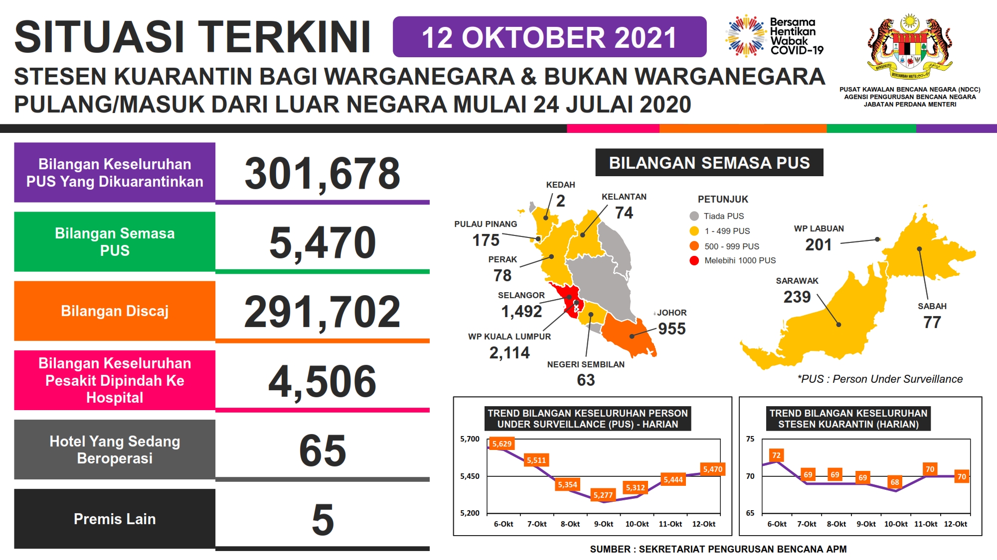 Situasi Terkini Stesen Kuarantin Bagi Warganegara Dan Bukan Warganegara Pulang/Masuk Dari Luar Negara 12/10/2021 Aiman Siaran Media 12 Oktober 2021 Jumlah paparan: 690 Rating: ( 0 Rating ) Sila beri kadar Undi 1 Undi 2 Undi 3 Undi 4 Undi 5 Lihat / Muat Turun PDF Facebook Twitter Seterusnya Seterusnya