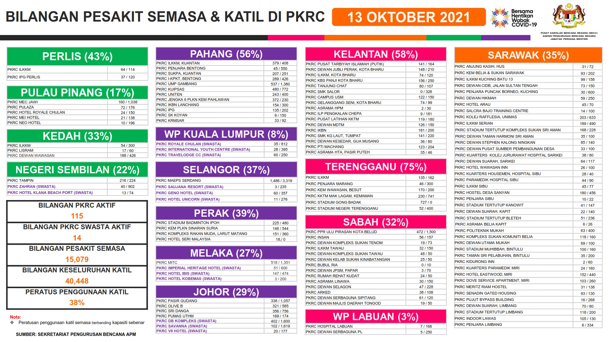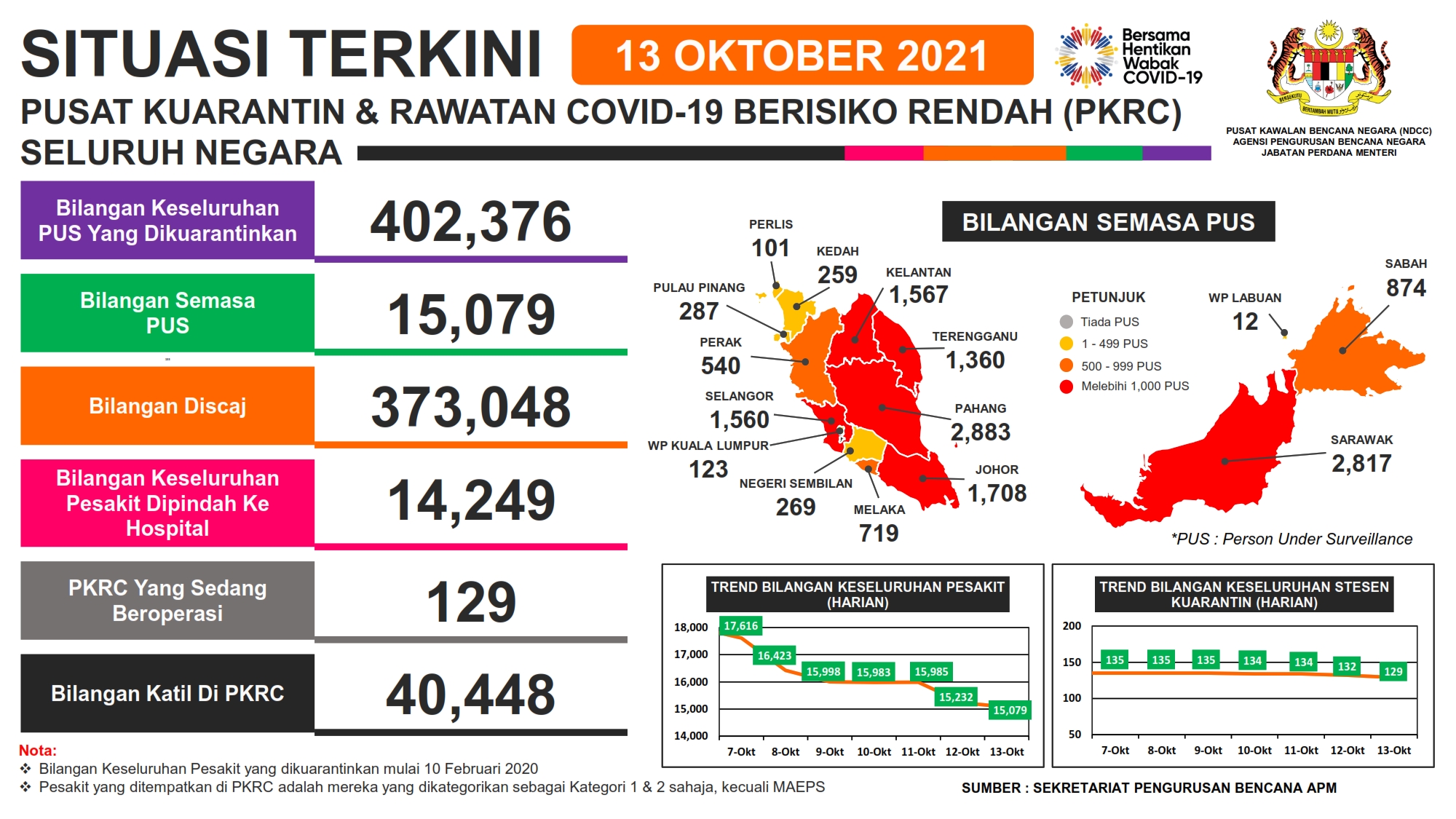 Situasi Terkini Stesen Kuarantin & Rawatan Covid-19 Berisiko Rendah (PKRC) 13/10/2021 Aiman Siaran Media 13 Oktober 2021 Jumlah paparan: 560 Rating: ( 0 Rating ) Sila beri kadar Undi 1 Undi 2 Undi 3 Undi 4 Undi 5 Lihat / Muat Turun PDF Facebook Twitter Seterusnya Seterusnya